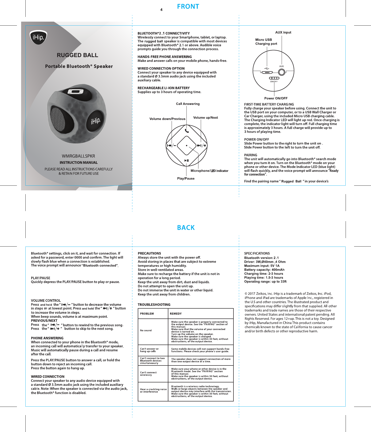 TESONIC WMRGBALLSPKR Bluetooth Speaker User Manual