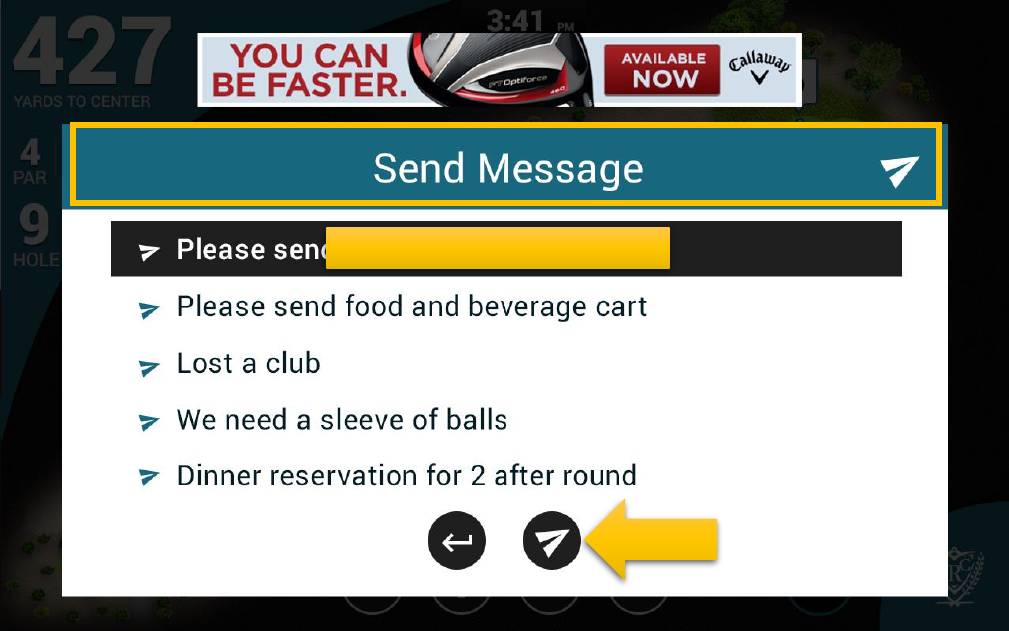 After power up, the GPS unit will display a message with information about the golf facility it operates on.