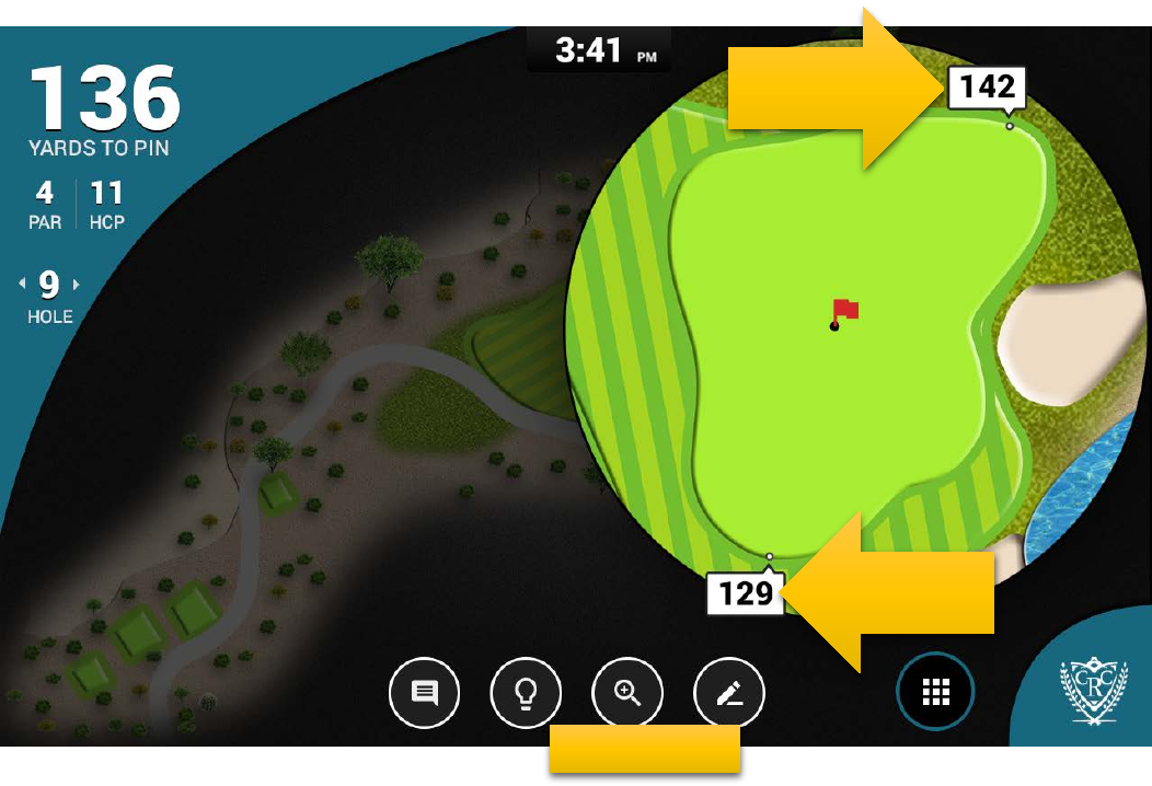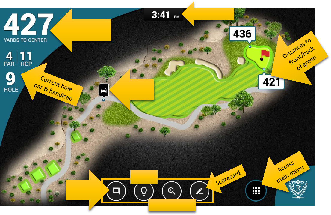 Once the golfer arrives on the first hole, the unit automatically transitions into play mode and shows the current hole.