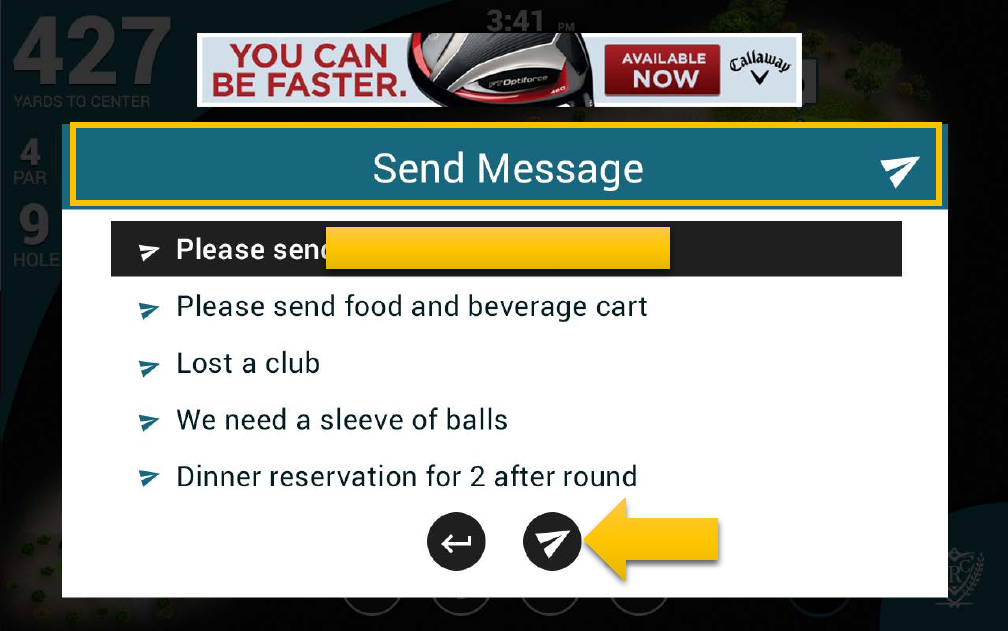 After power up, the GPS unit will display a message with information about the golf facility it operates on.