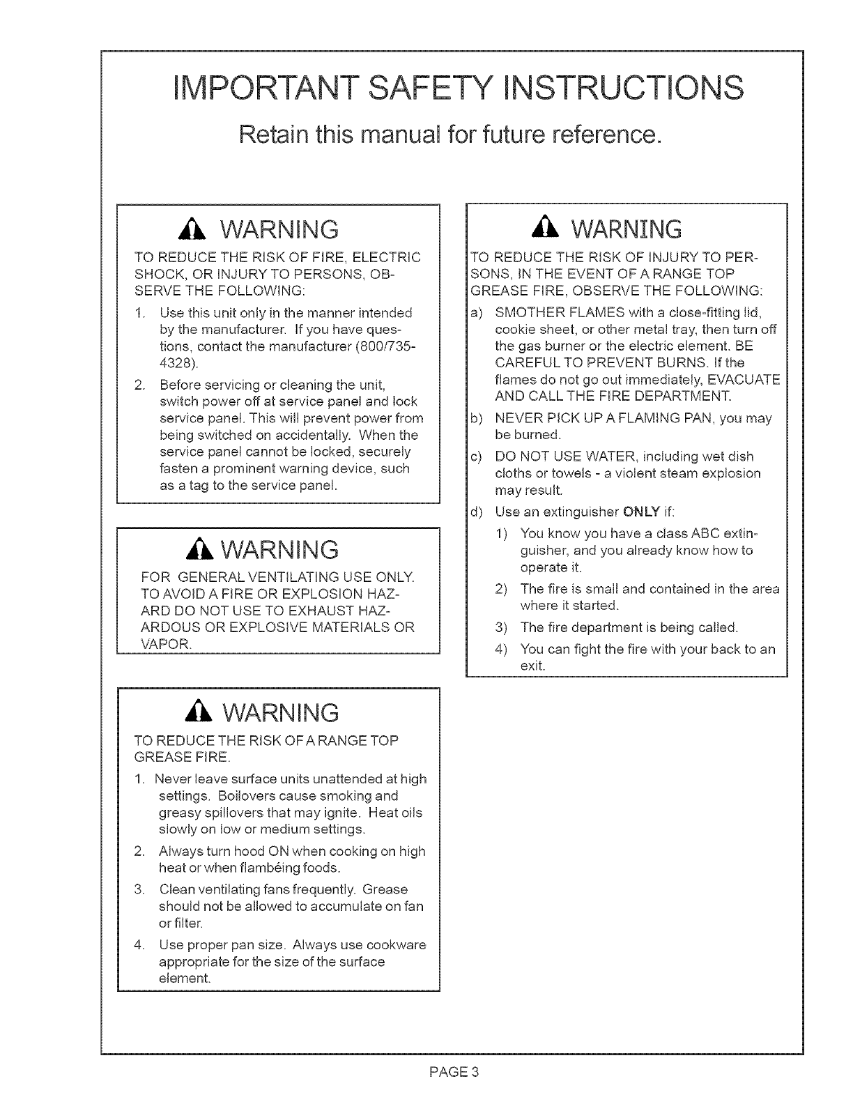 GREASE FIRE, OBSERVE THE FOLLOWING:
