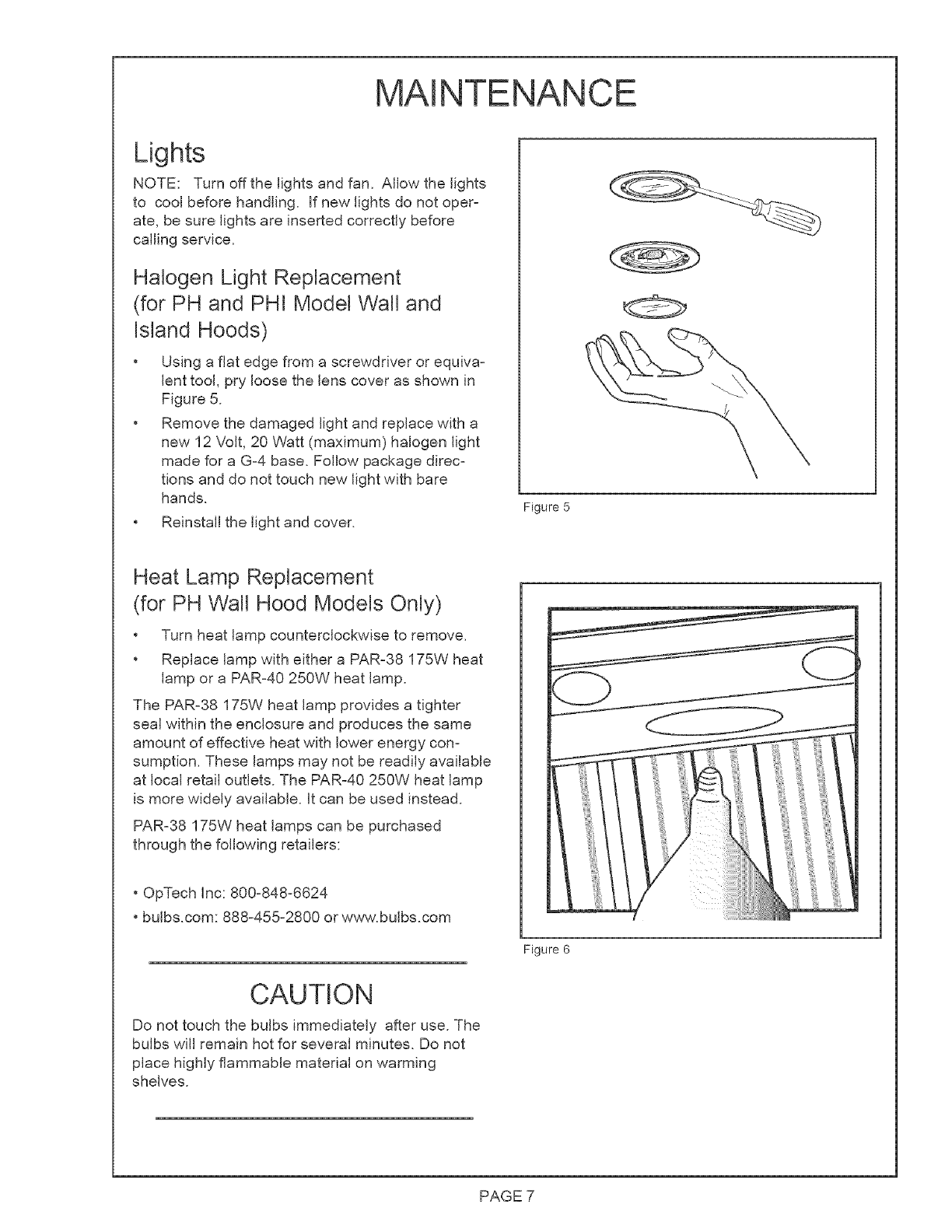 bulbs will remain hot for several minutes. Do not