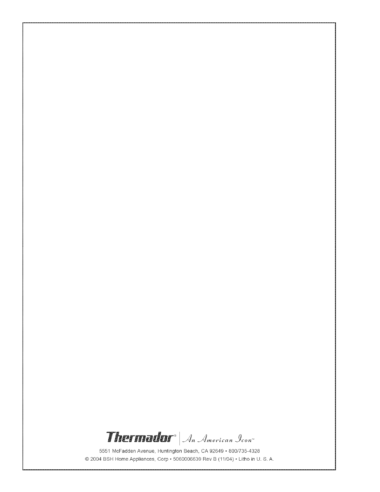 © 2004 BSH Home Appliances, Corp • 5060006639 Rev B (11/04) • Litho in U. S. A.