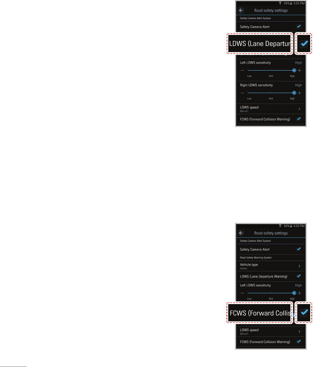 2. Enable FCWS feature by selecting "Dashcam Settings > Road safety settings