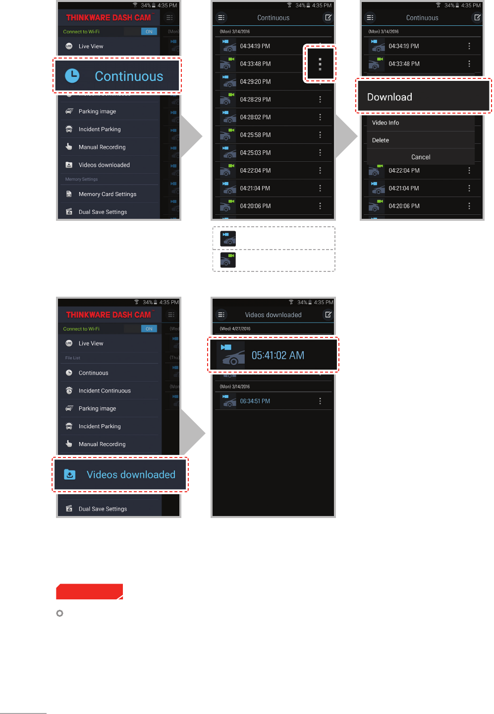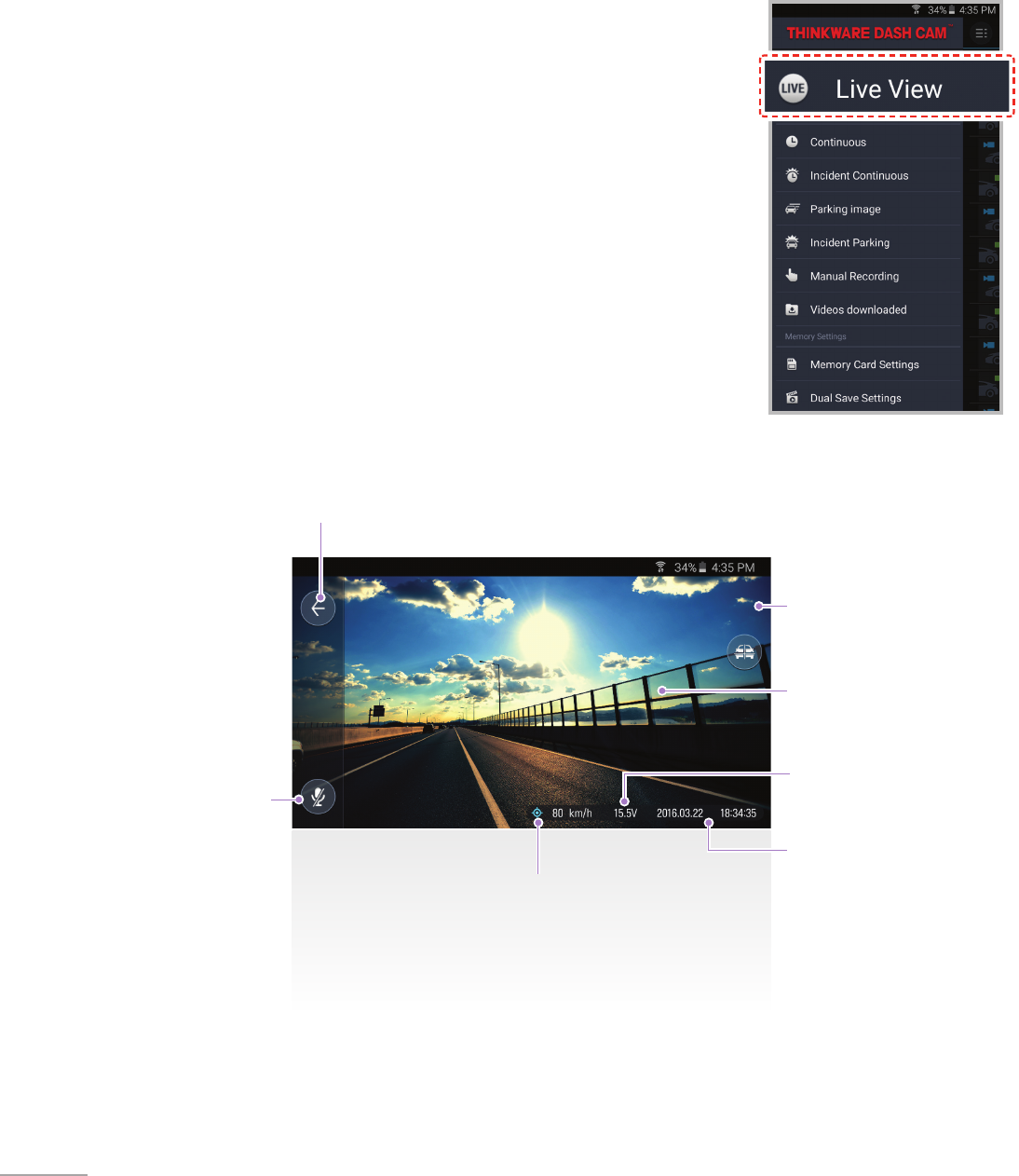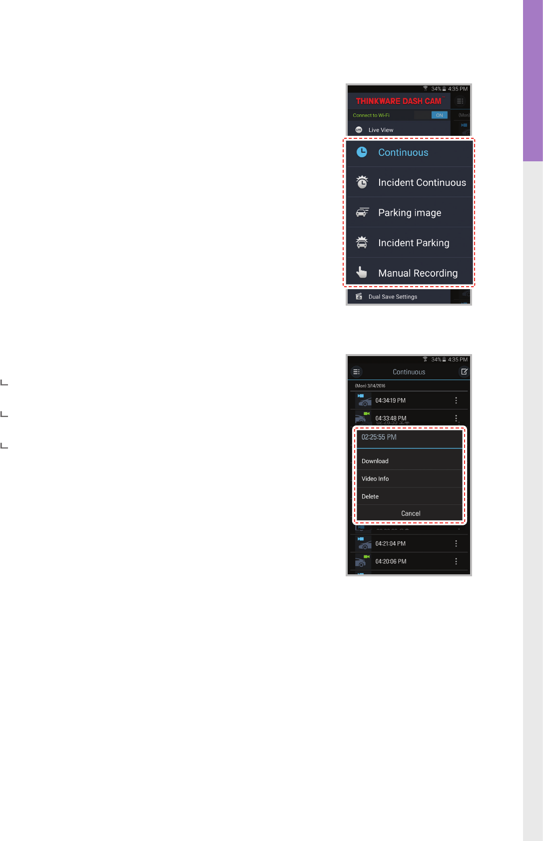 Following section describing the Thinkware Dash Cam Mobile Viewer menu is based on Android devices.