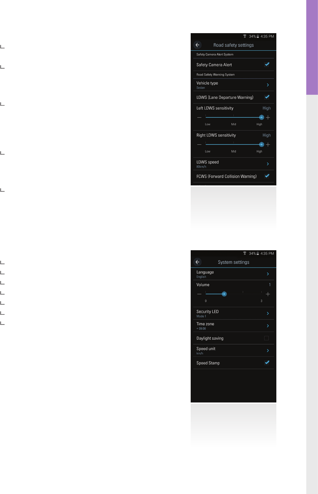 Left LDWS sensitivity / Right LDWS sensitivity :