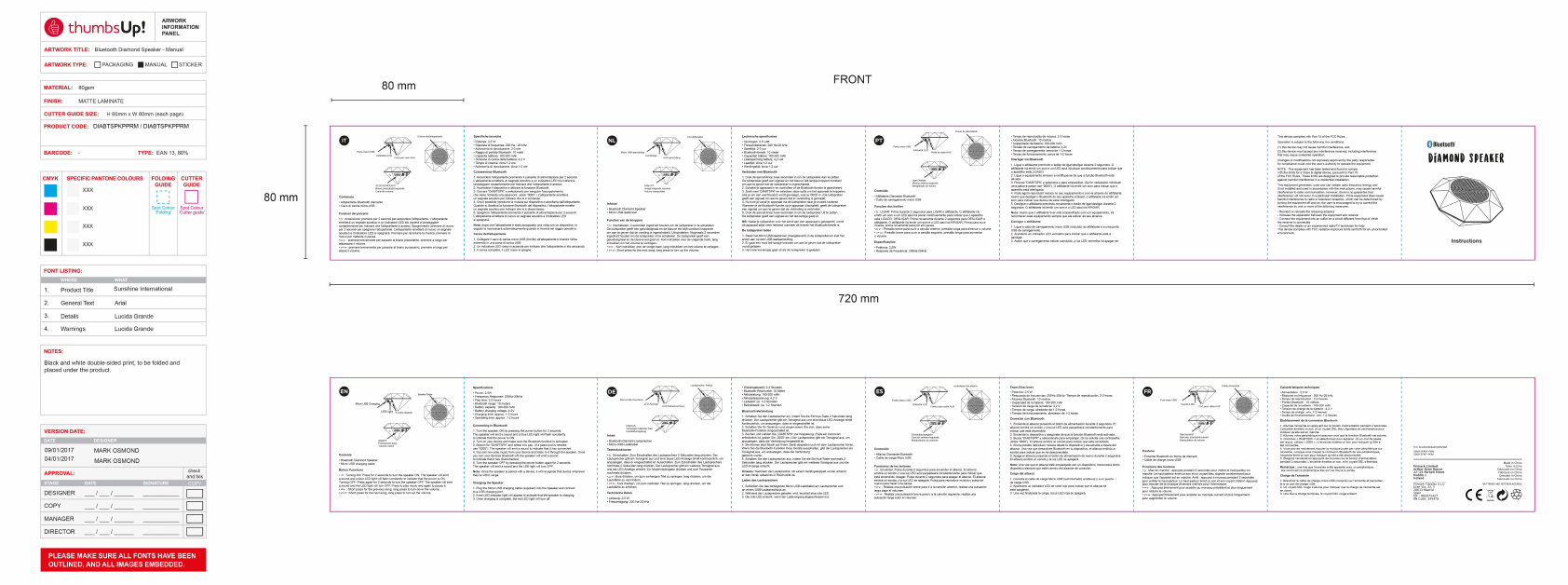 THUMBS UP DIABTSPKPRM Bluetooth Diamond Speaker User Manual