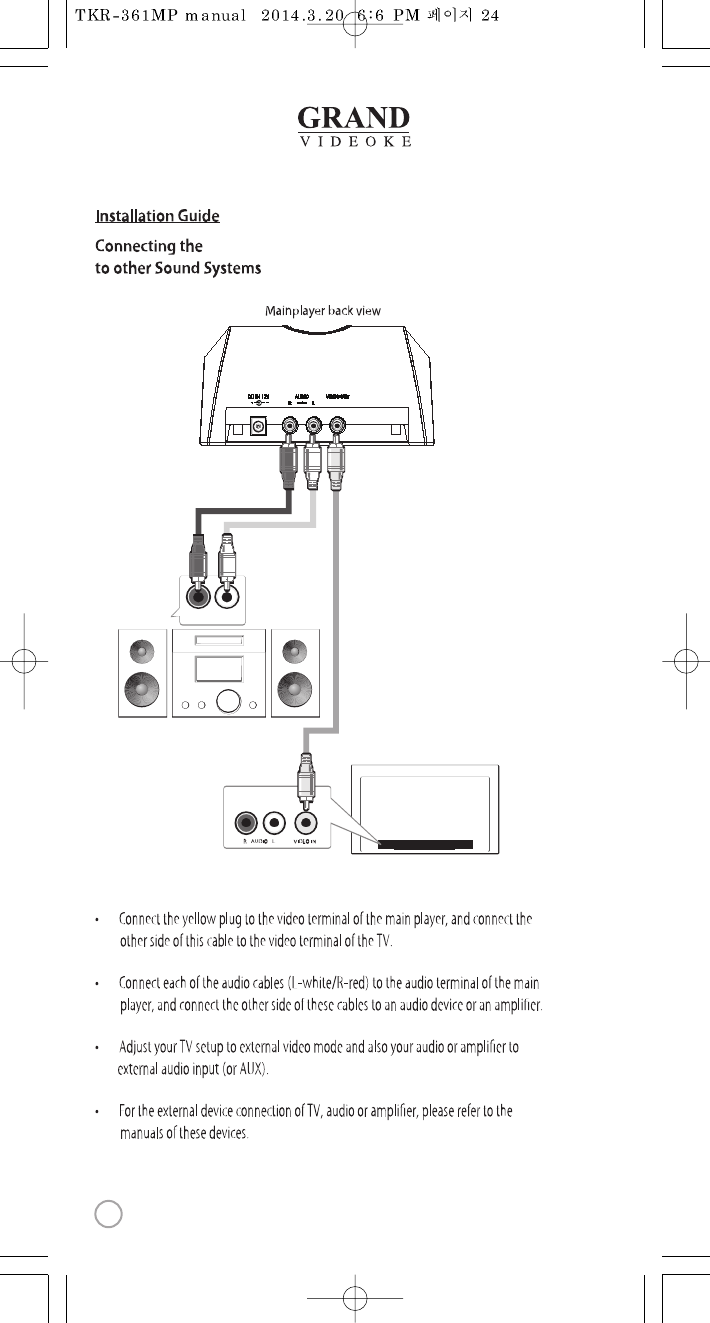-Connecting the GRAND VIDEOKE to other Sound Systems