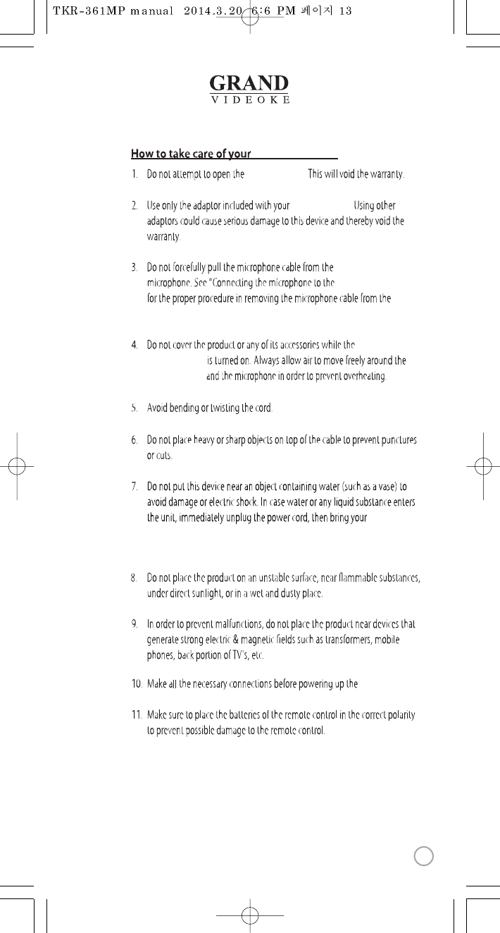 TJ Media Co., Ltd. Wireless Microphone TKR 300 manual 102x210 basic
