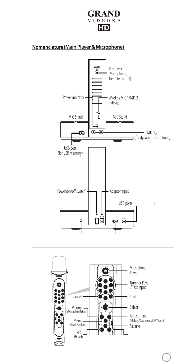 - Microphone2 : It is available to adjust both of the second wireless microphone and
