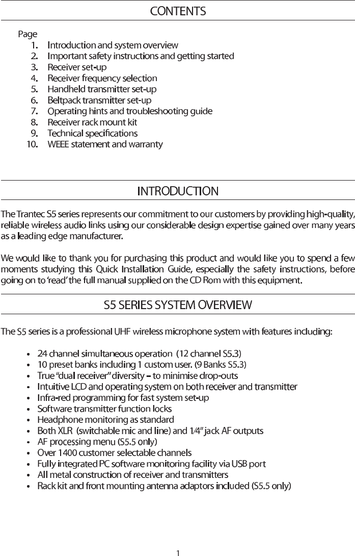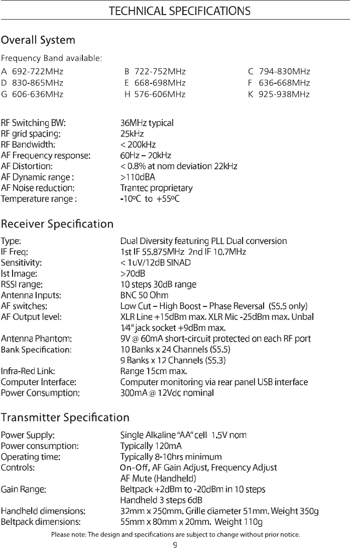 TOA S5HDX Wireless Microphone User Manual Exhibit 8 Users Manual