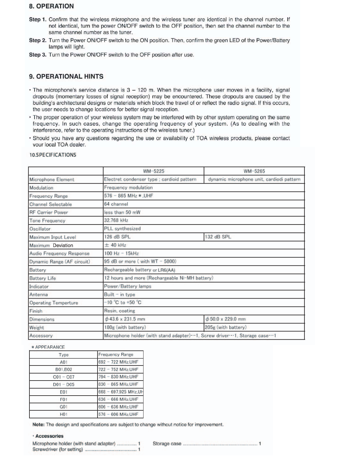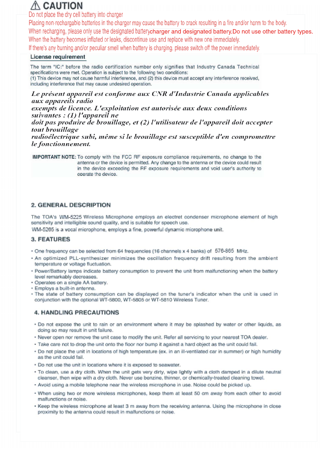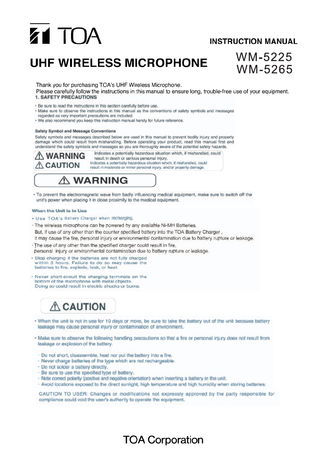 TOA WM-5225 Wireless Microphone User Manual Exhibit E User Manual rev
