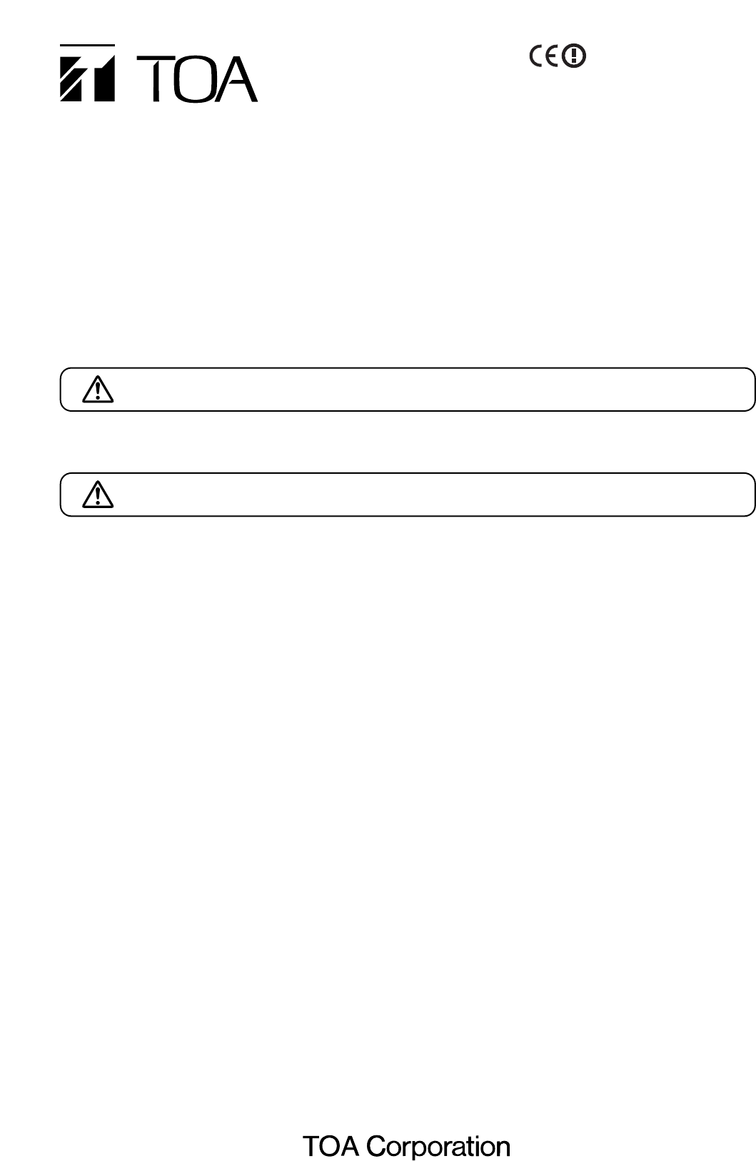 • Never open nor remove the unit case to modify the unit. Refer all servicing to your nearest TOA dealer.