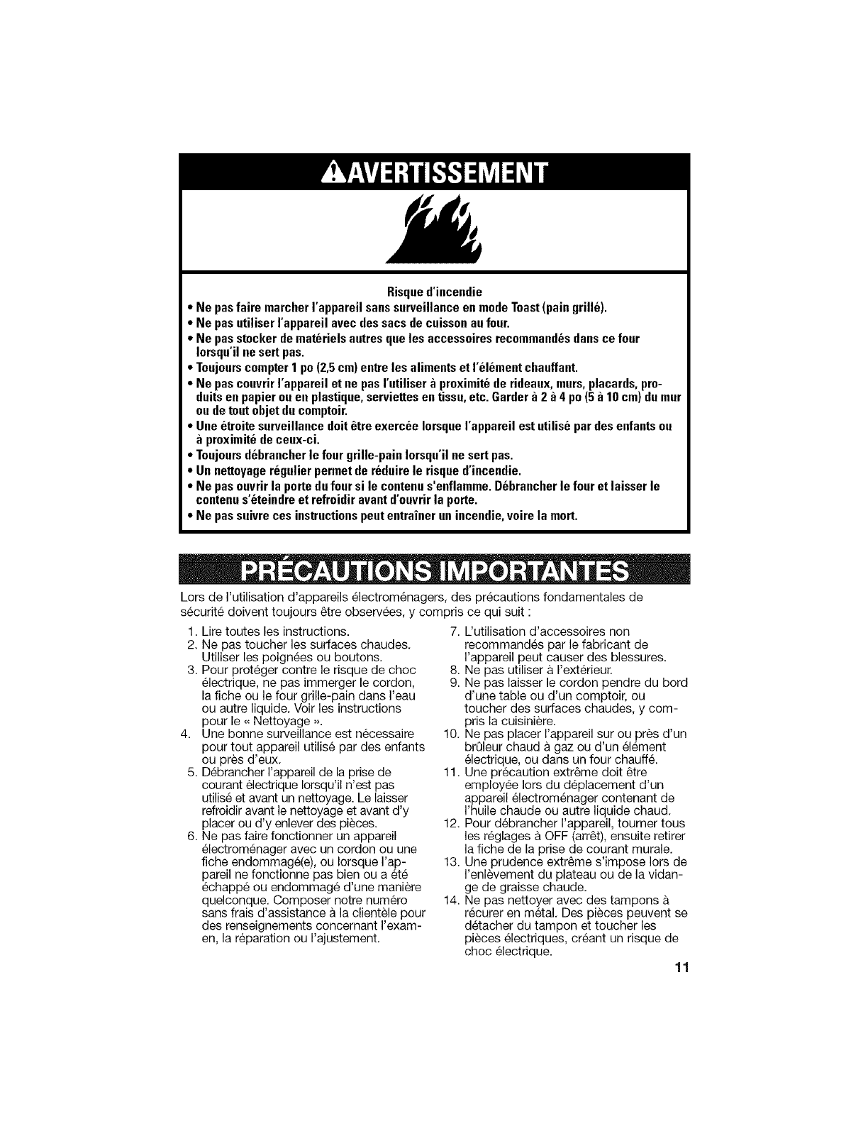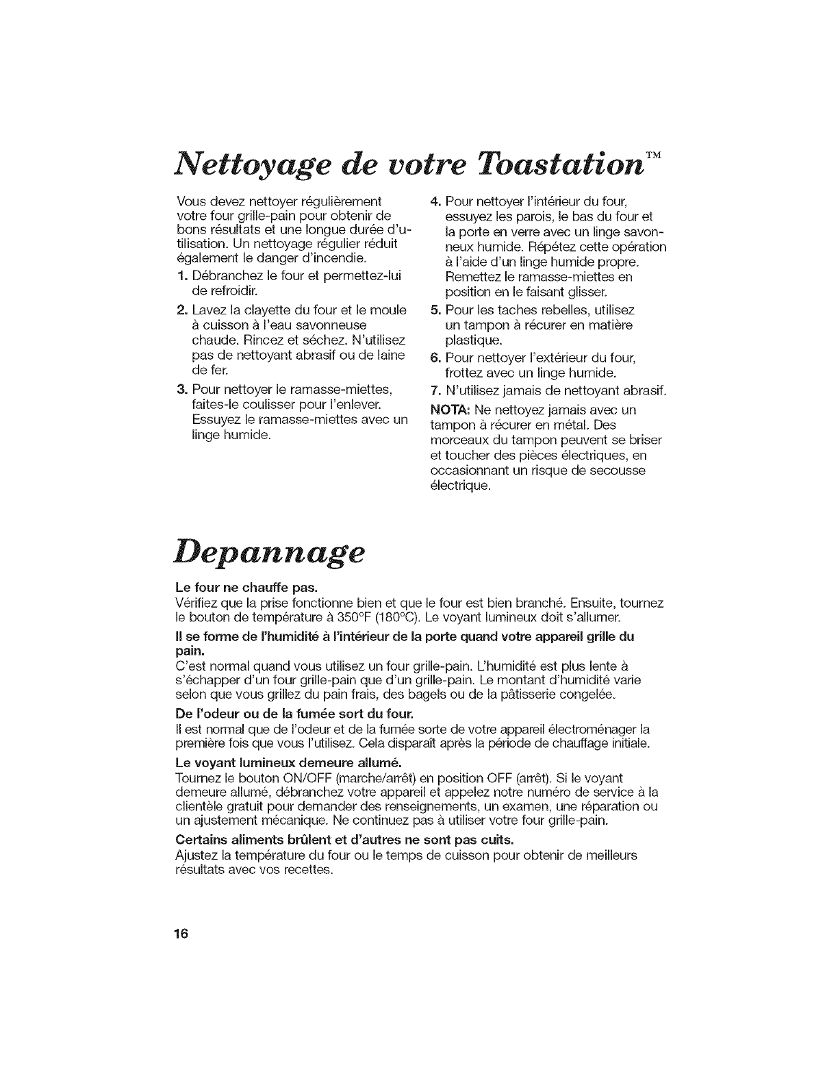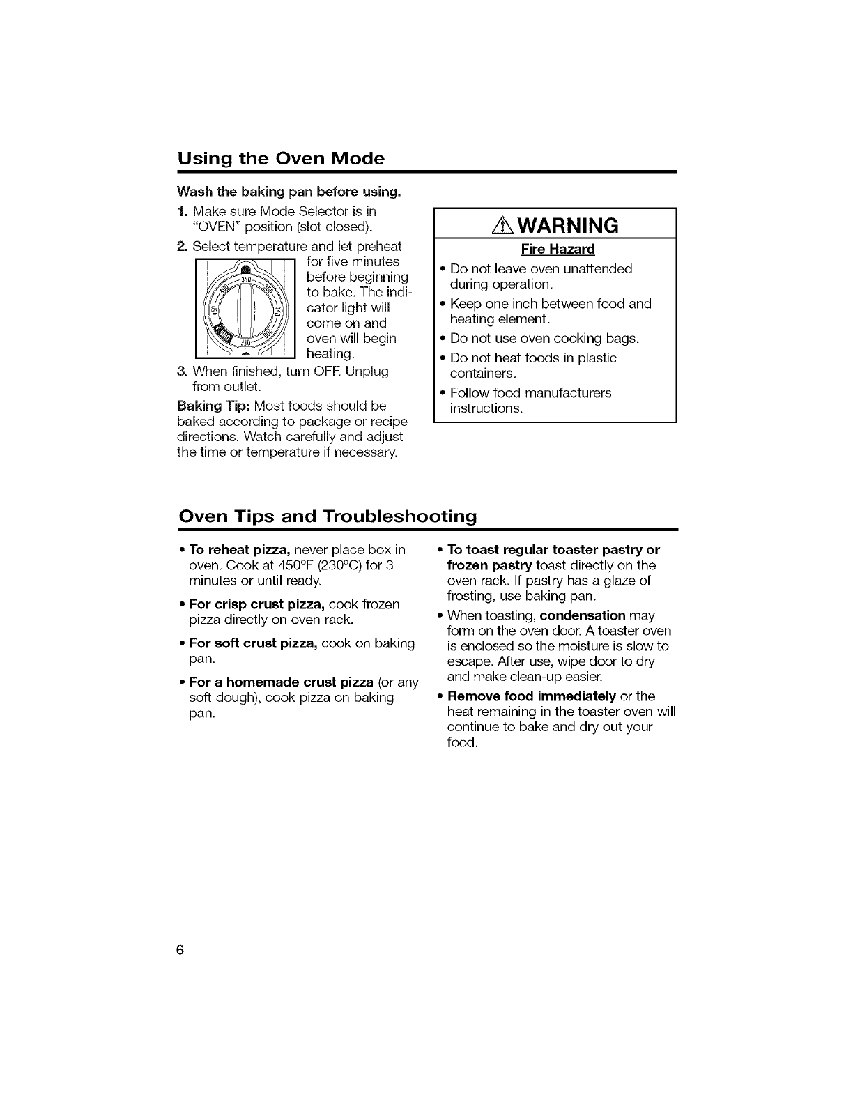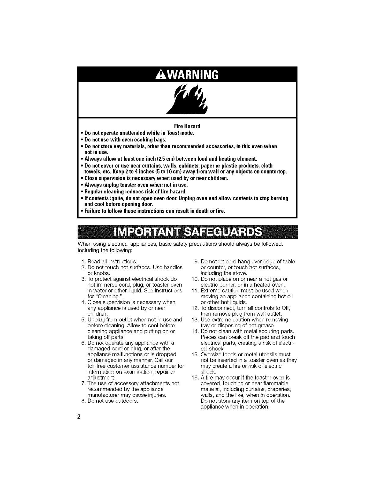 16. A fire may occur if the toaster oven is