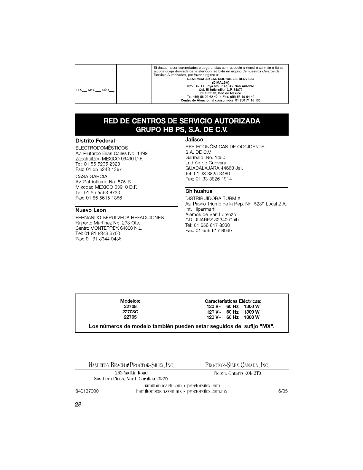 Para hacer efectiva la garantia, Ileve su aparato al Centro de Servicio Autorizado mas cercano a su domicilio (consuite la