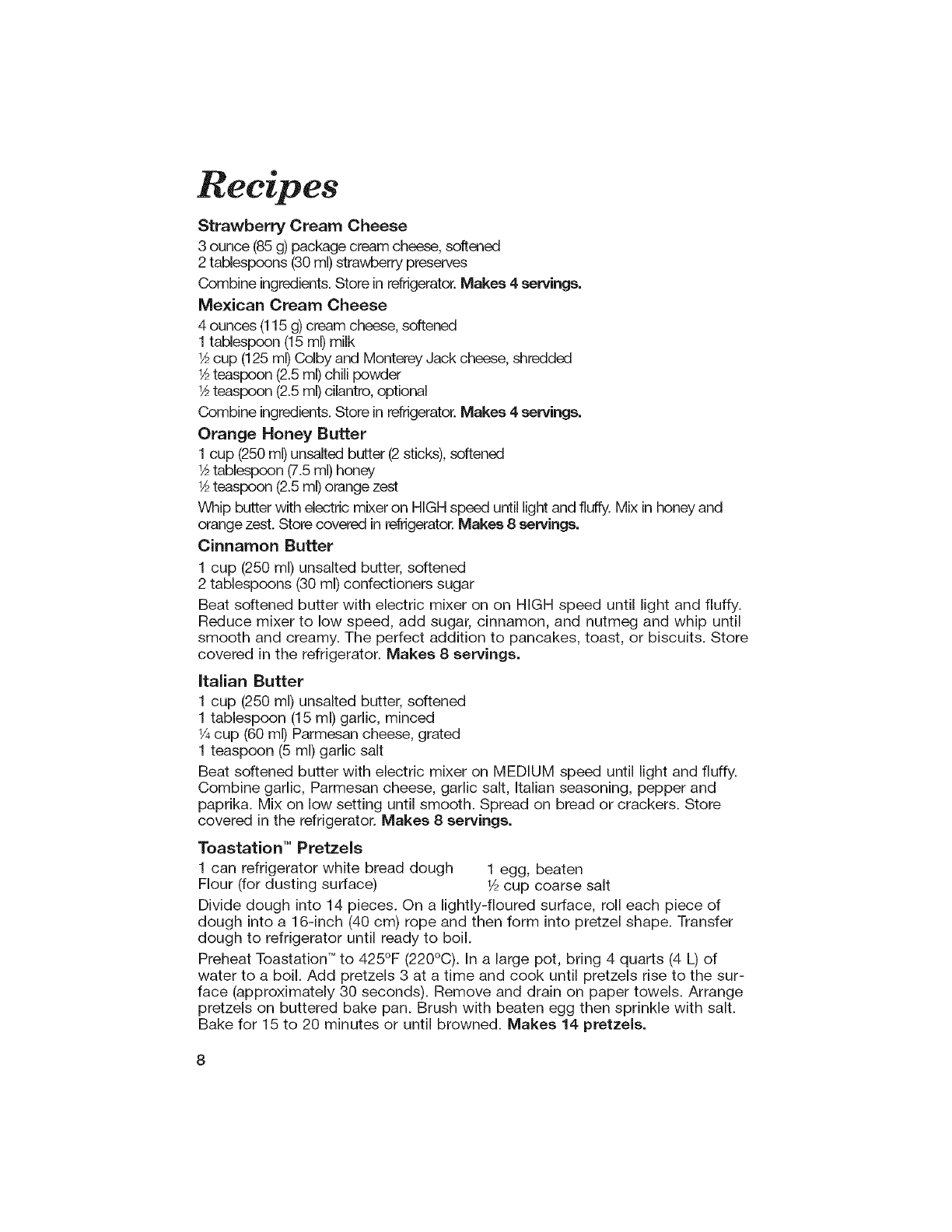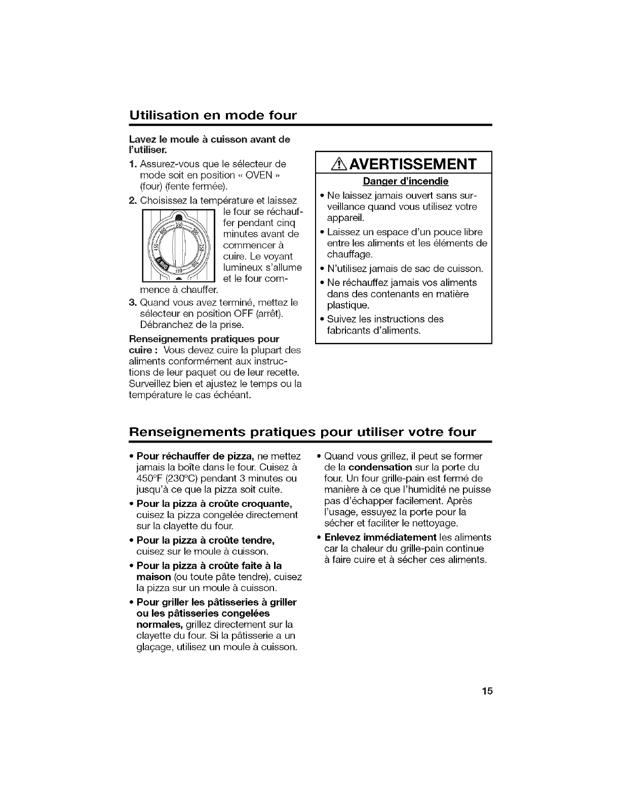 *Always allow at least one inch (2.5 cm) between food and heating element.