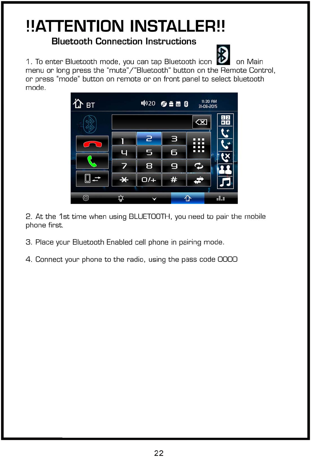 BLUETOOTH CONNECTION ATTENTION INSTRUCTIONS .................................. 22