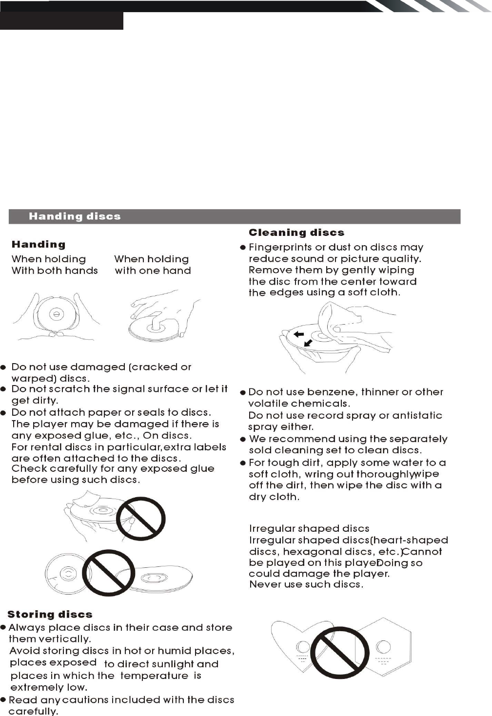 bended or broken discs and when a disc is not loaded properly, do not force it into the