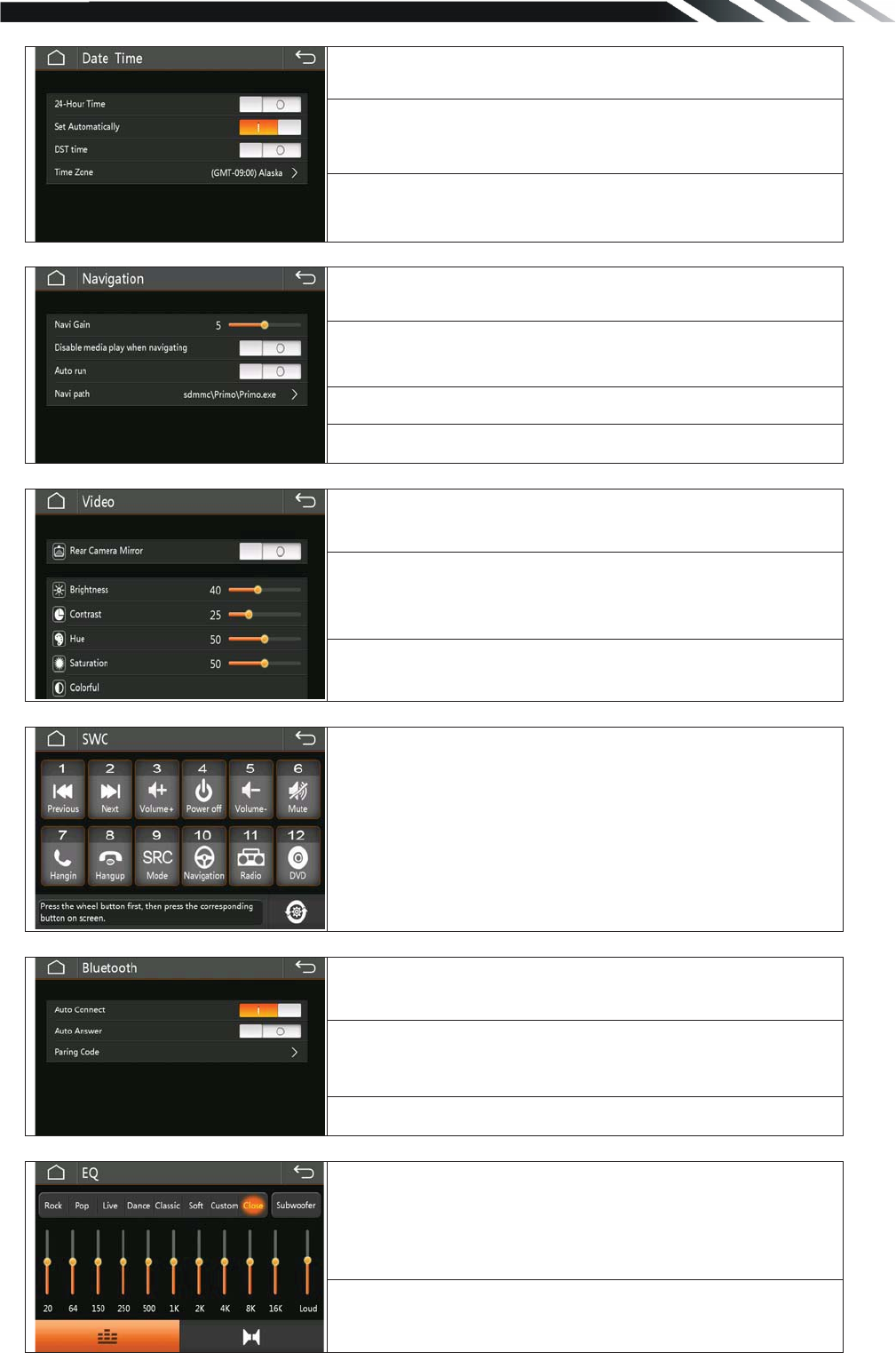 Frequency range(Asia Area): 87.5 – 108MHz(Step 100KHz)