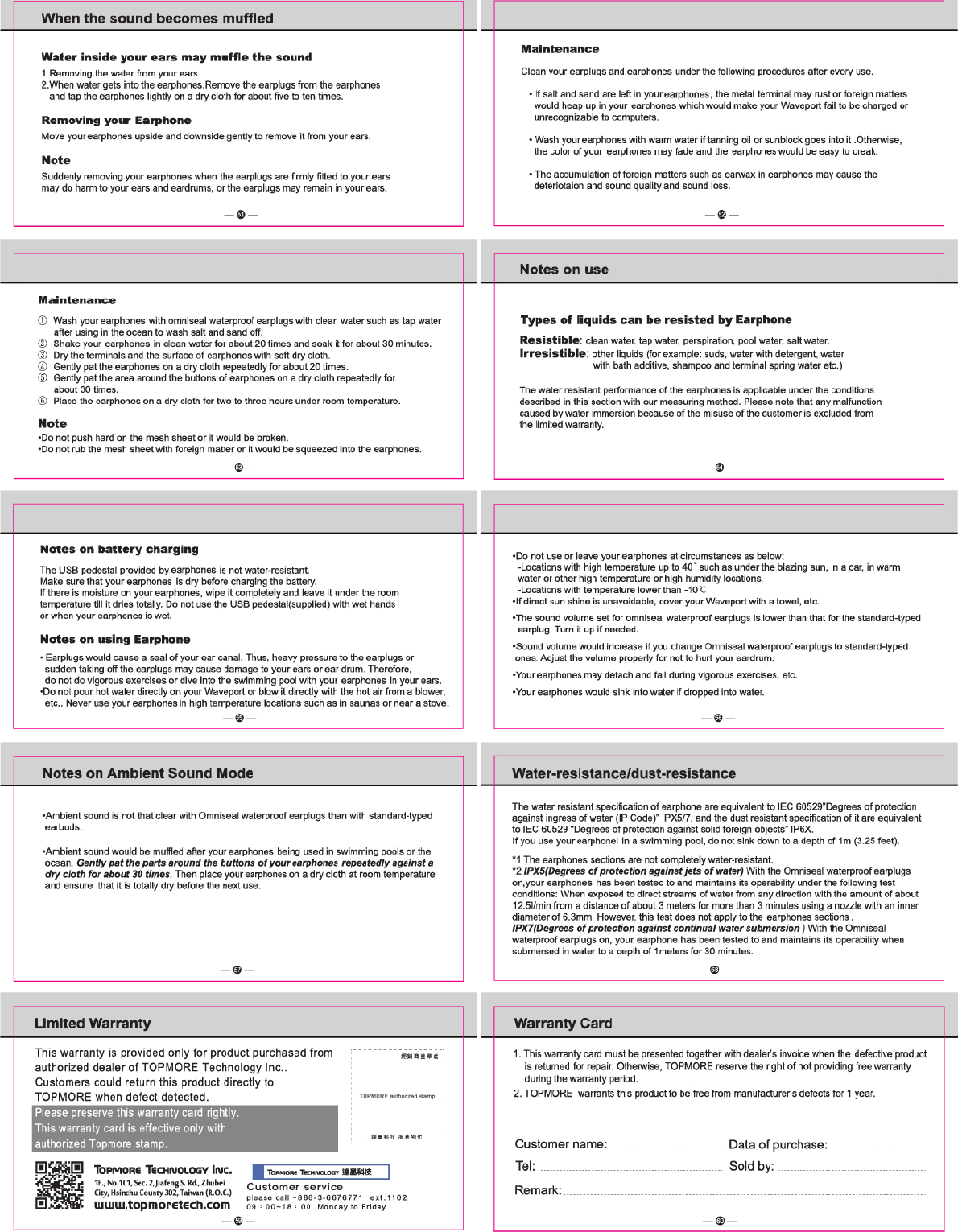 TOPMORE TECHNOLOGY INC. Waterproof Wireless Earphones EN