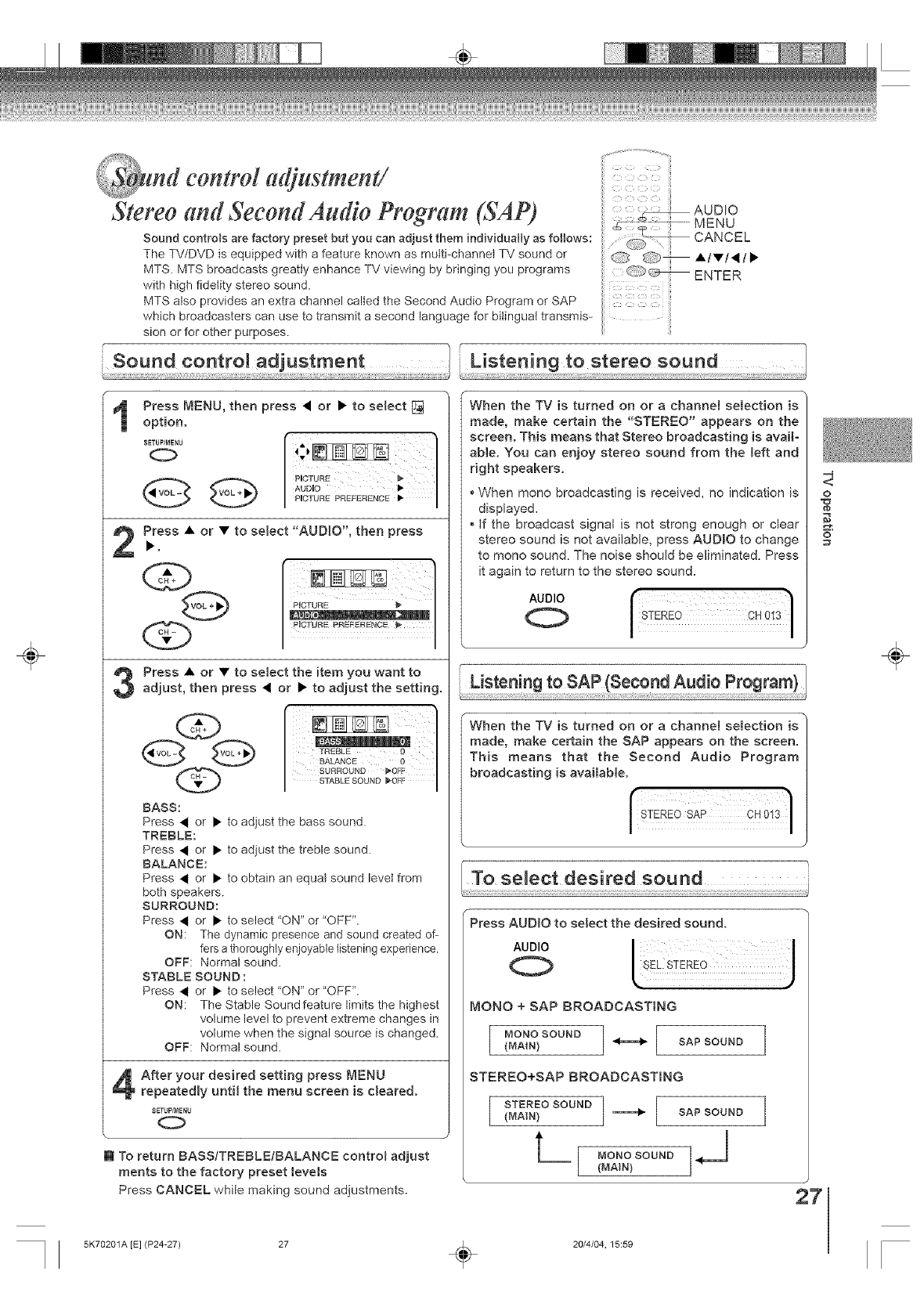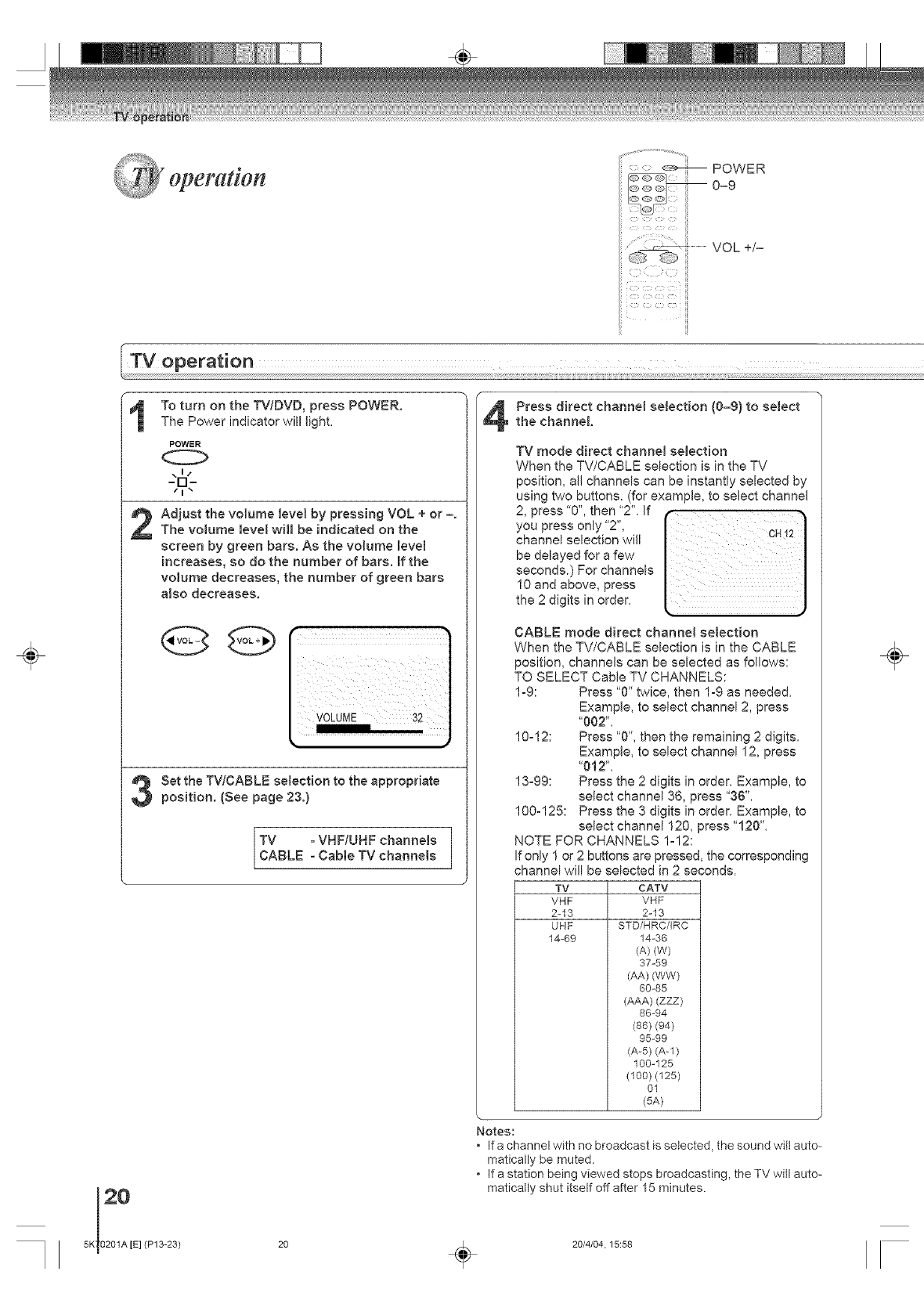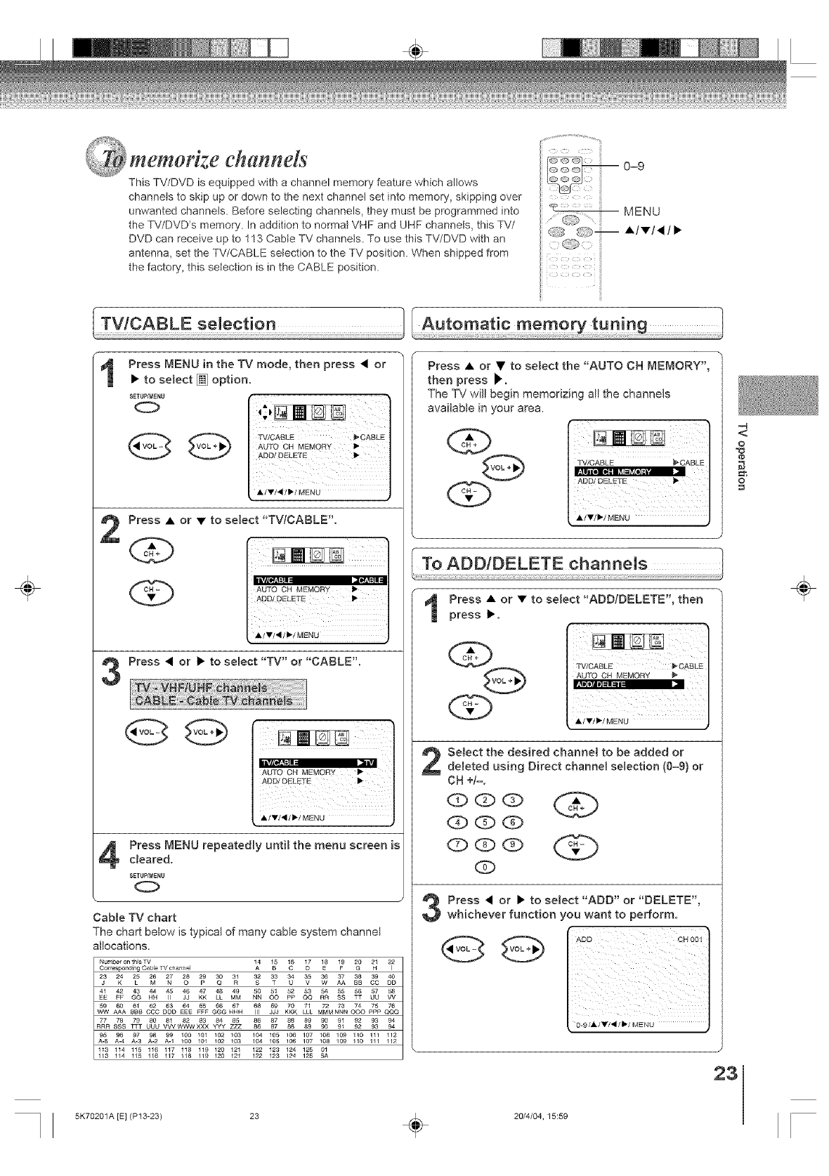 TOSHIBA TV/VCR Or DVD Combo Manual L0503307