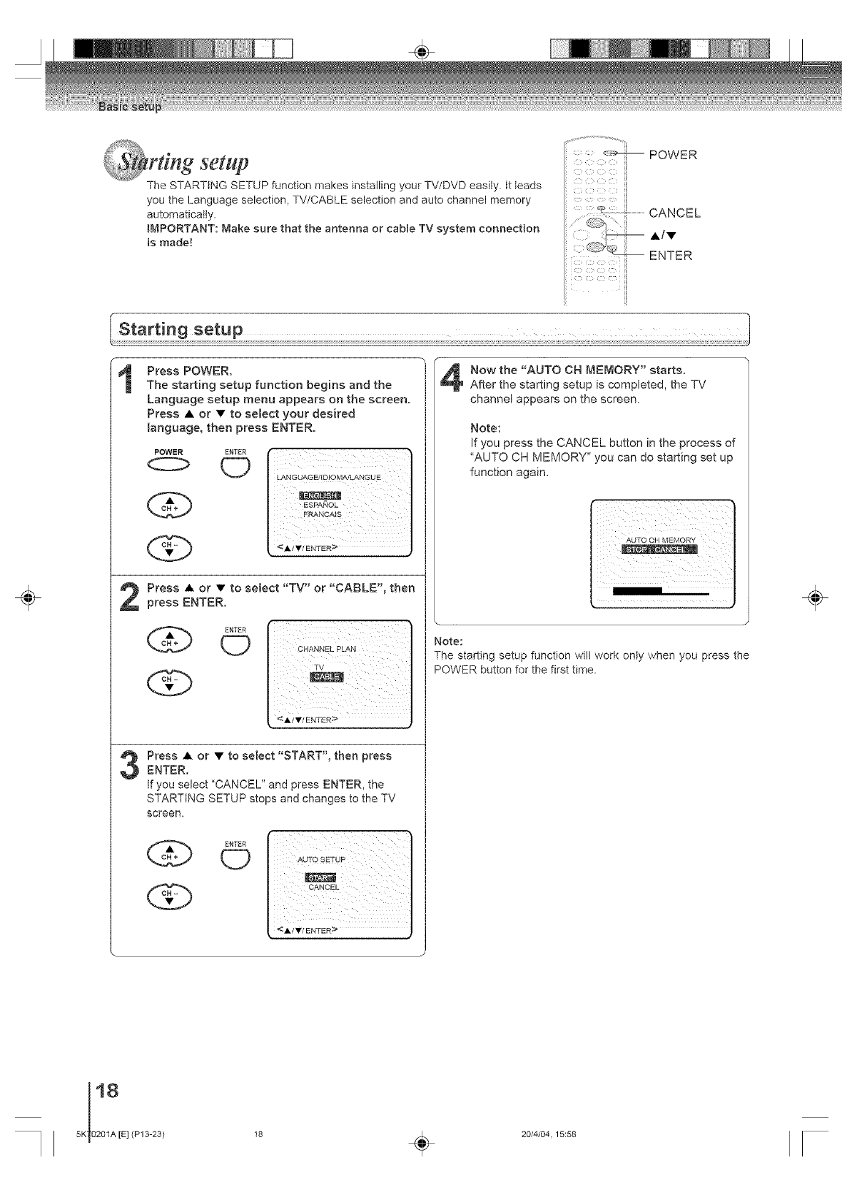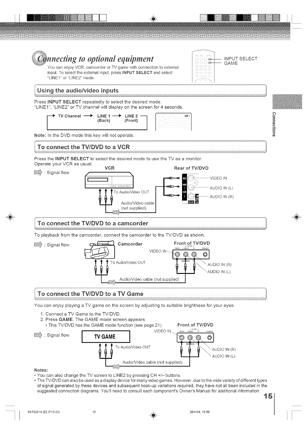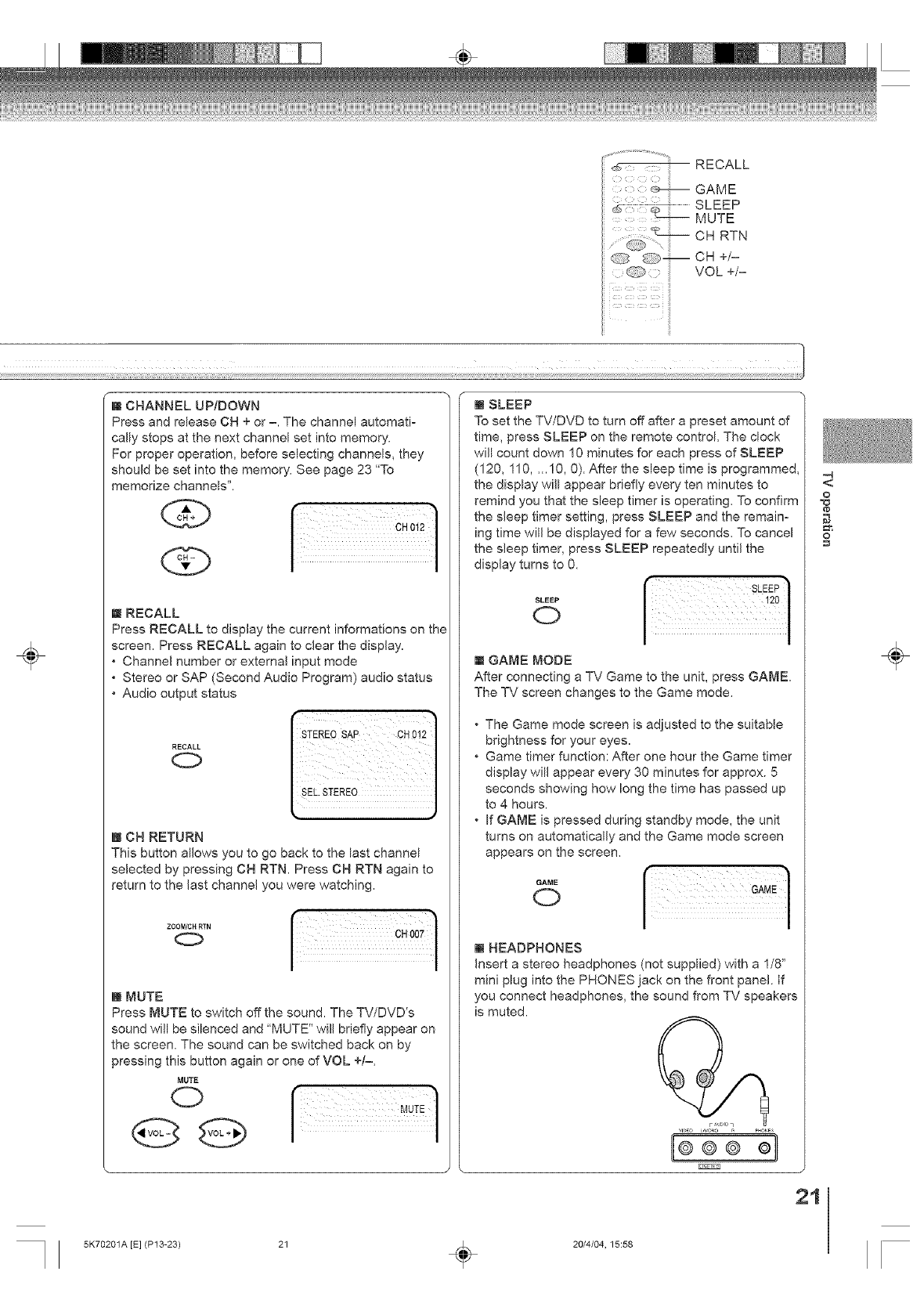TOSHIBA TV/VCR Or DVD Combo Manual L0503307