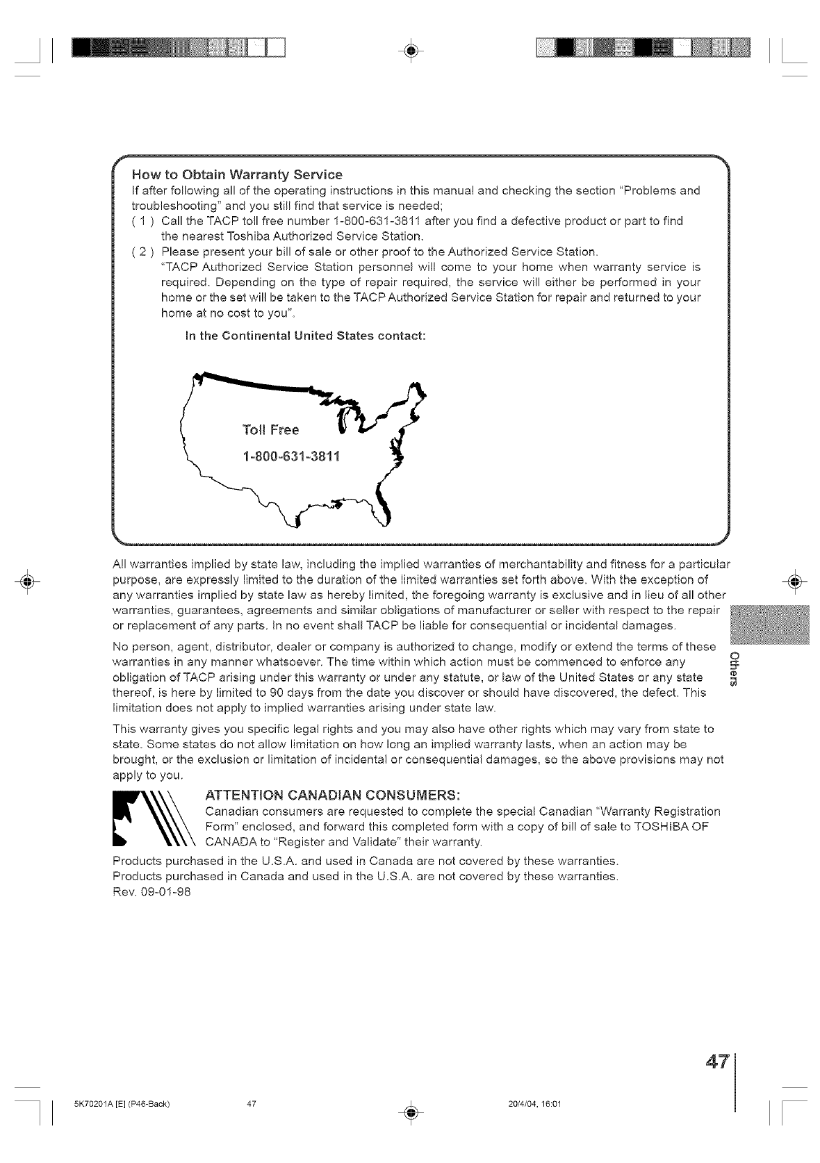 Canadian consumers are requested to complete the special Canadian "Warranty Registration