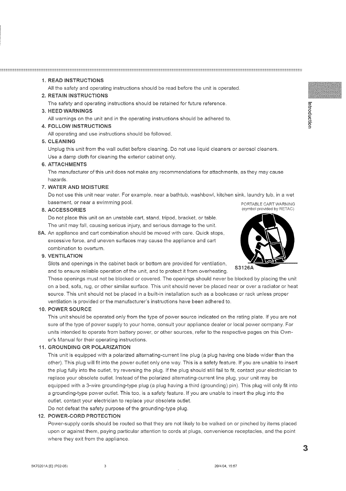 WARNING: TO PREVENT FIRE OR SHOCK HAZARD, DO NOT EXPOSE THIS APPLIANCE TO RAIN
