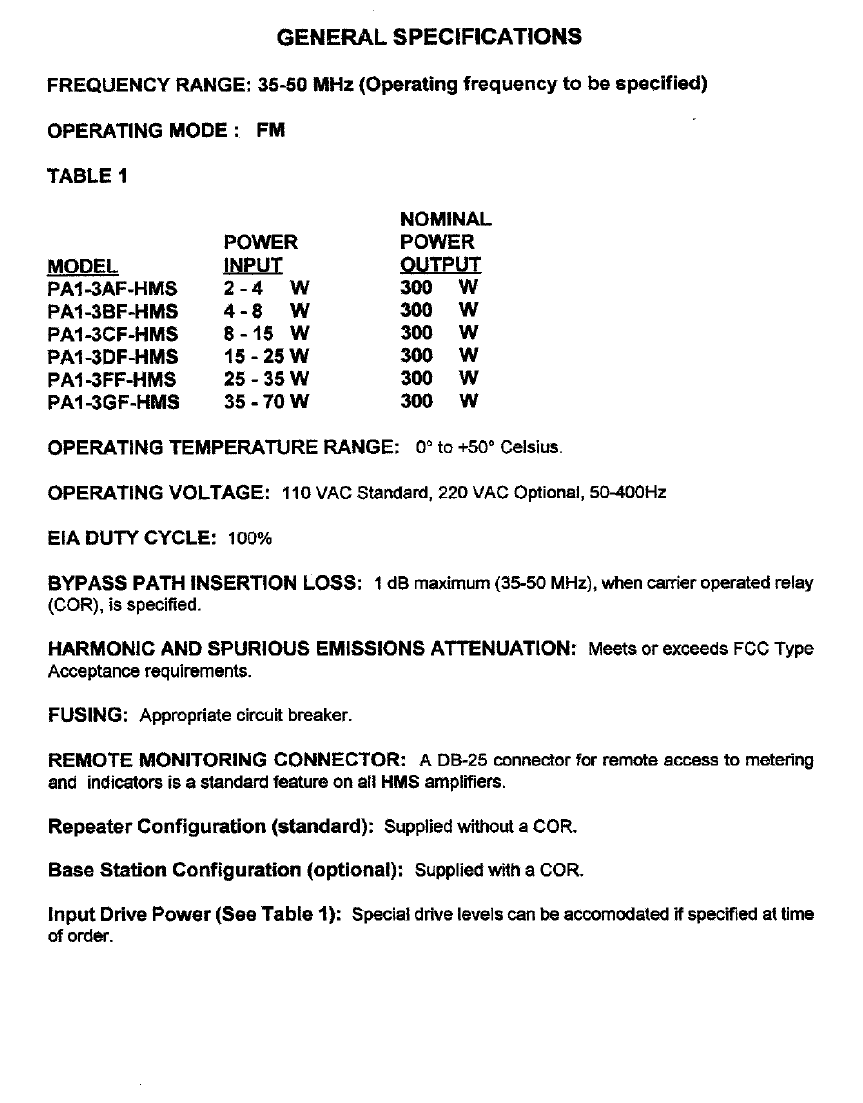 TPL Communications 1-3XF-H VHF Amplifier User Manual