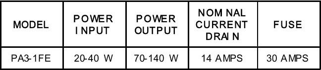 NOMINAL CURRENT DRAIN: 14 AMPS. Standby current is less