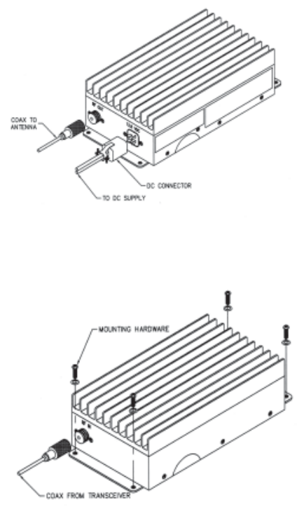 antenna to the “RF OUTPUT” terminal on the amplifier, with 50 Ohm