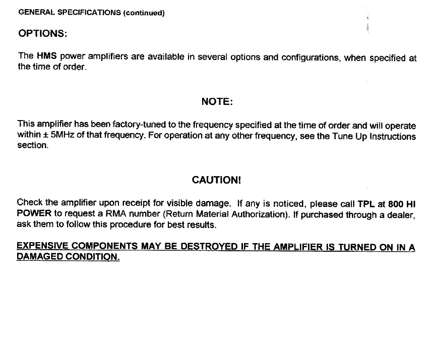 TPL Communications Inc VHF Amplifier UAERS MANUAL