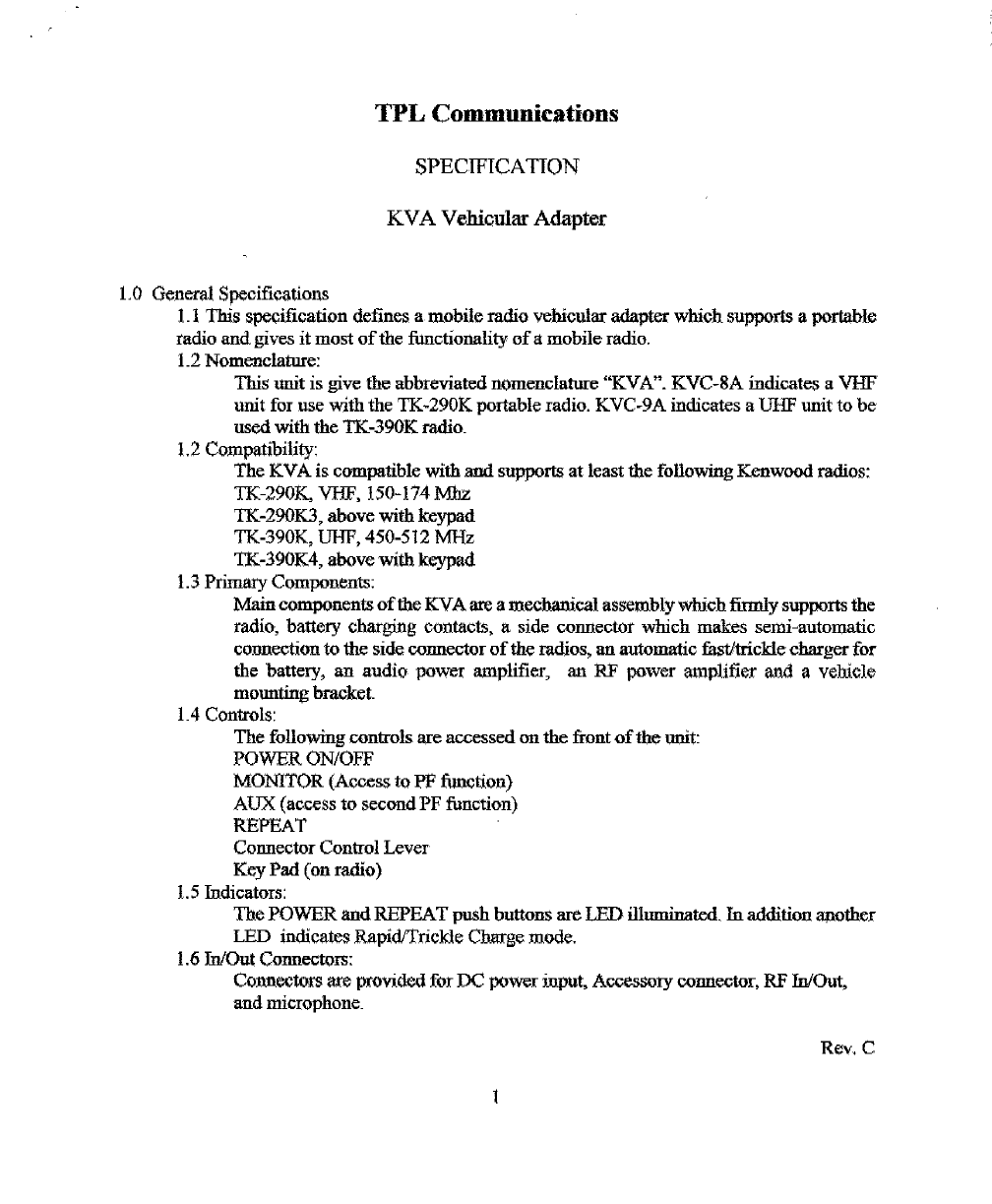 TPL Communications 6-KVC9A RF Power Amplifier User Manual users Manual