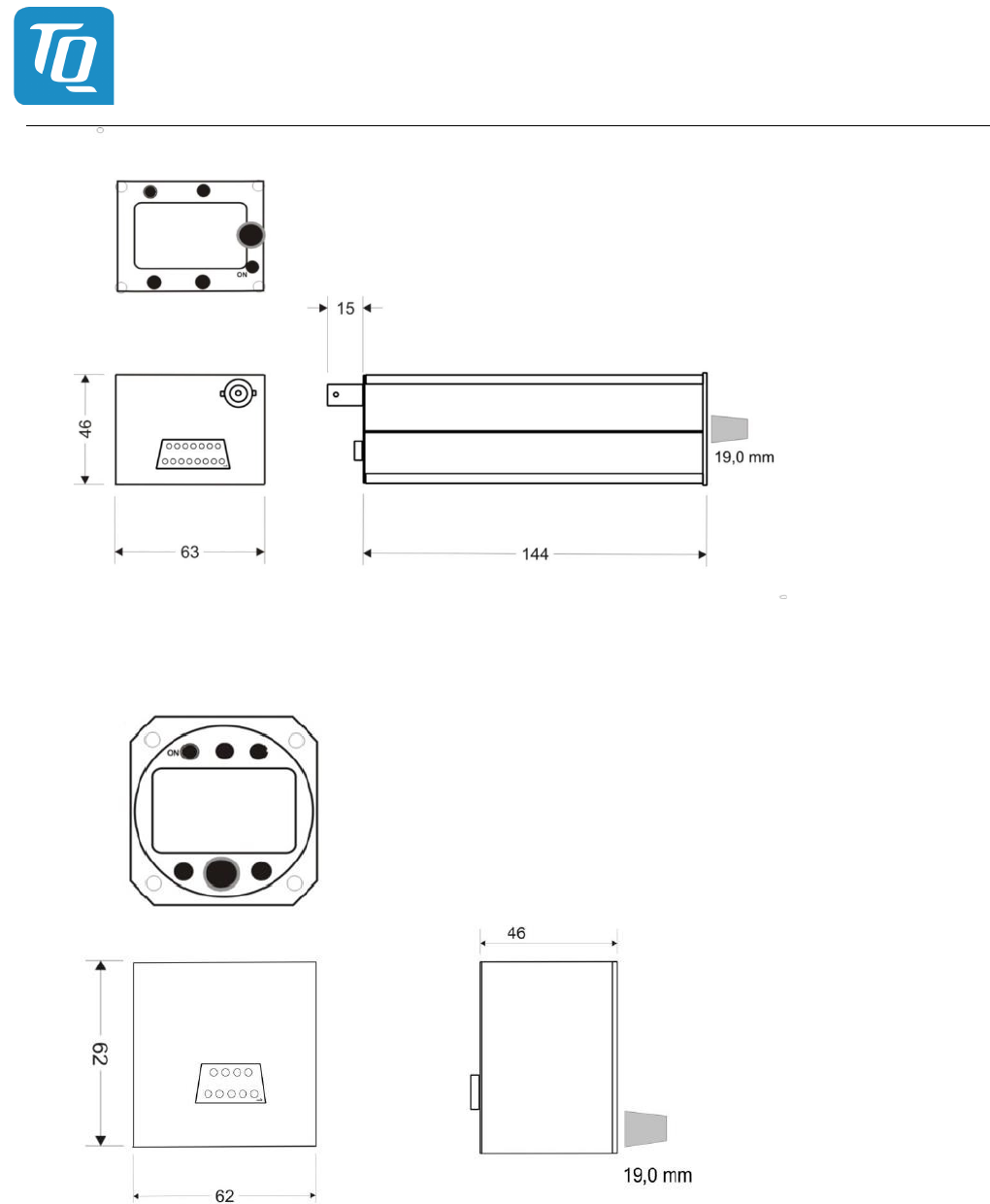 Dimensions 57mm-case Height: 62mm, Width: 62 mm, Depth: 146mm plus rear panel
