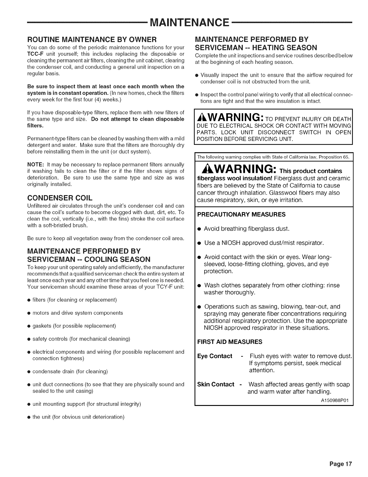 properly maintain the Central Air Conditioner as set forth in the Use and Care manual.
