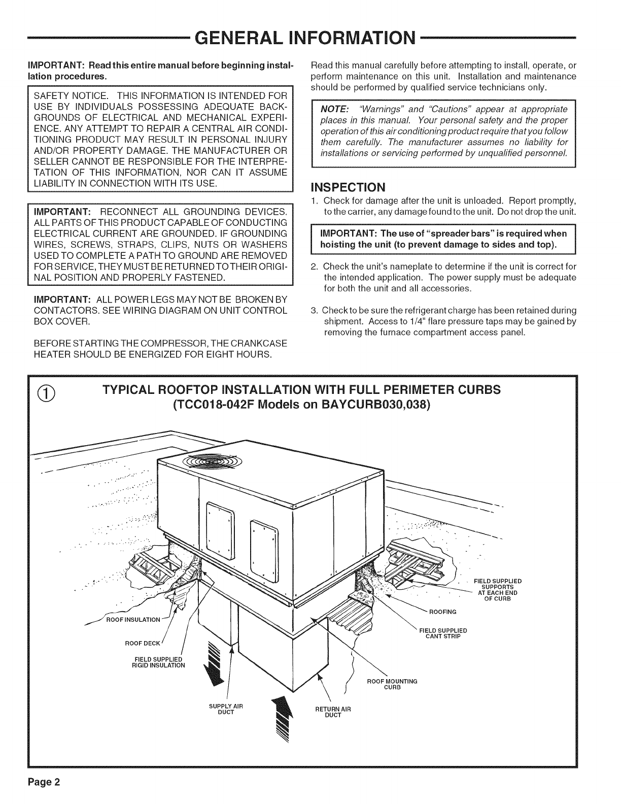 TYPICAL ROOFTOP INSTALLATION WITH FULL PERIMETER CURBS