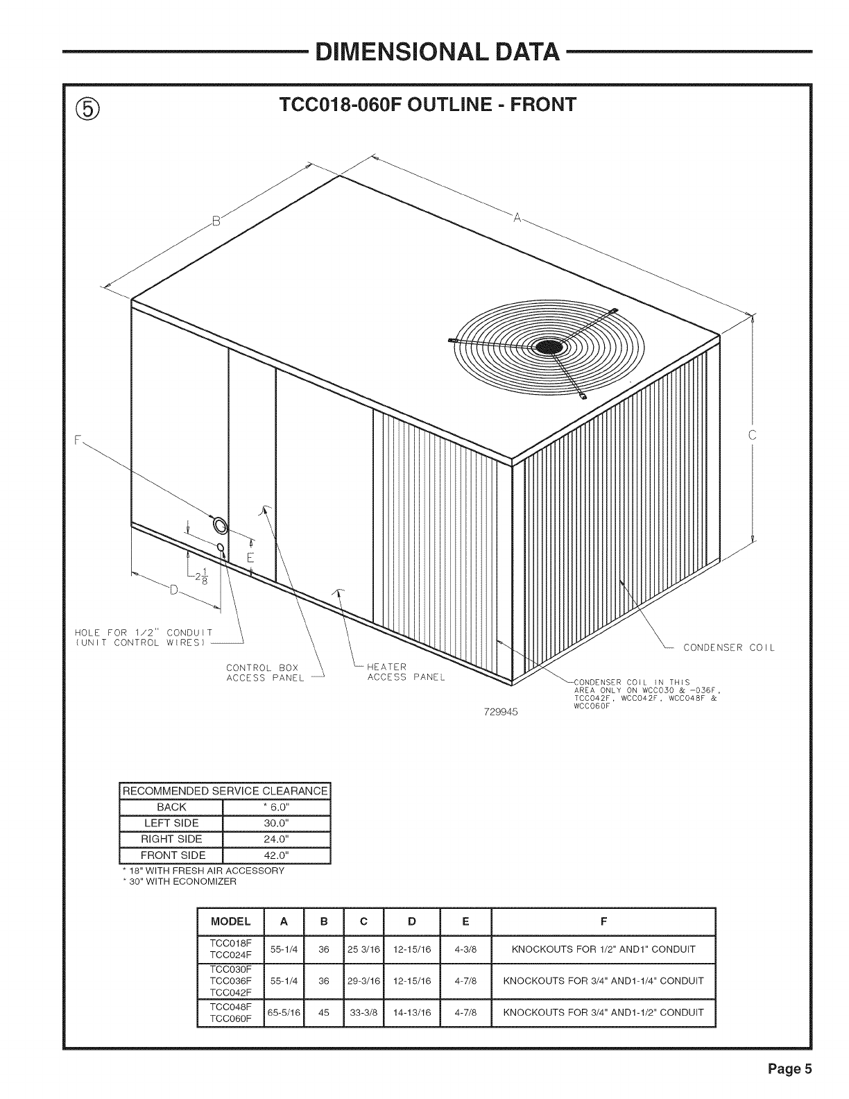 TCC0S0F1 TCC060FI,3,4 Cooling W/Electric Heat