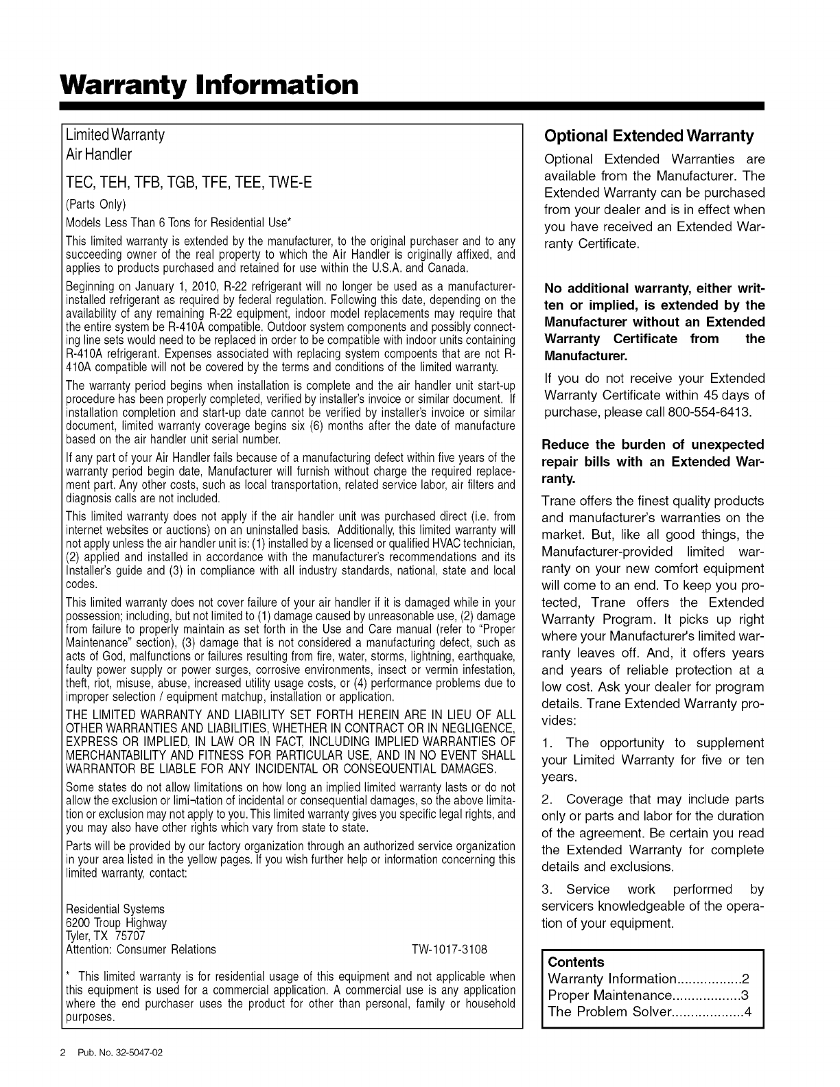 This limited warranty does not cover failure of your air handler if it is damaged while in your
