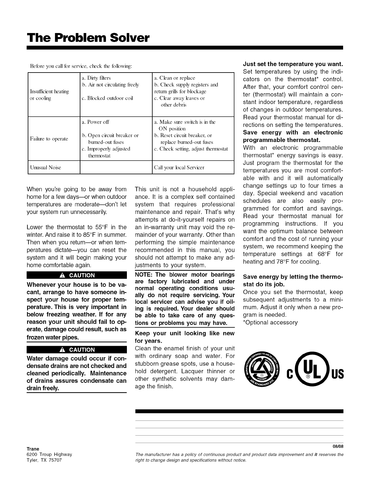 TRANE Air Handler (indoor Blower&evap) Manual L0904656
