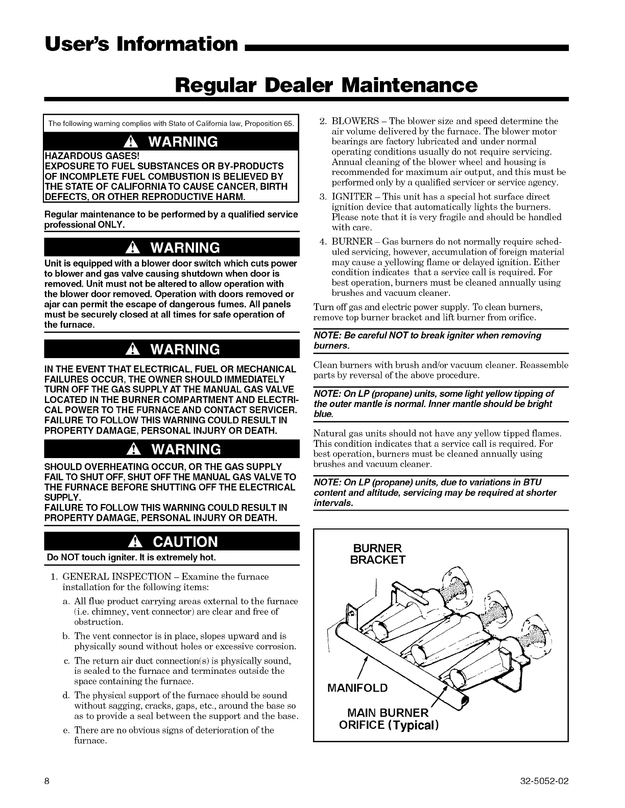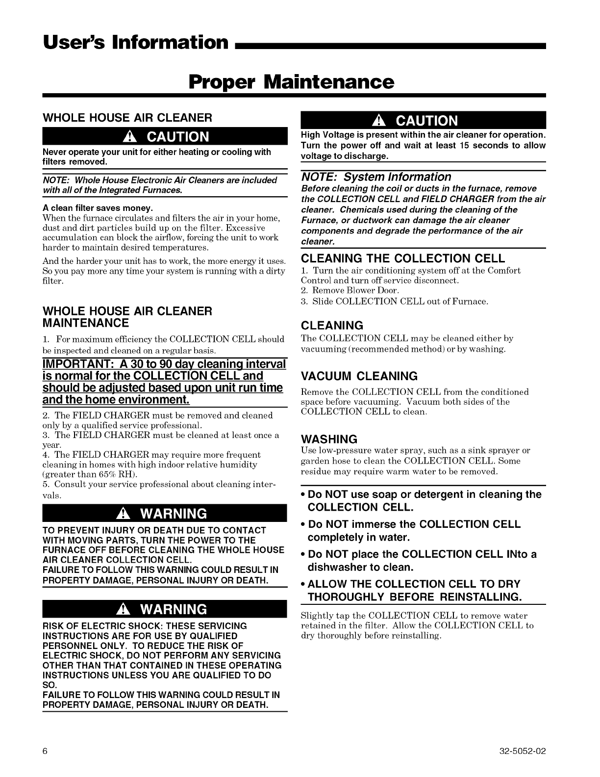 set forth in the Use and Care manual (see Proper Maintenance section).
