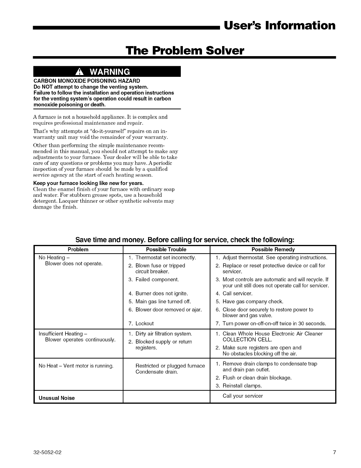 7. OPERATION - Your warm air furnace should not be