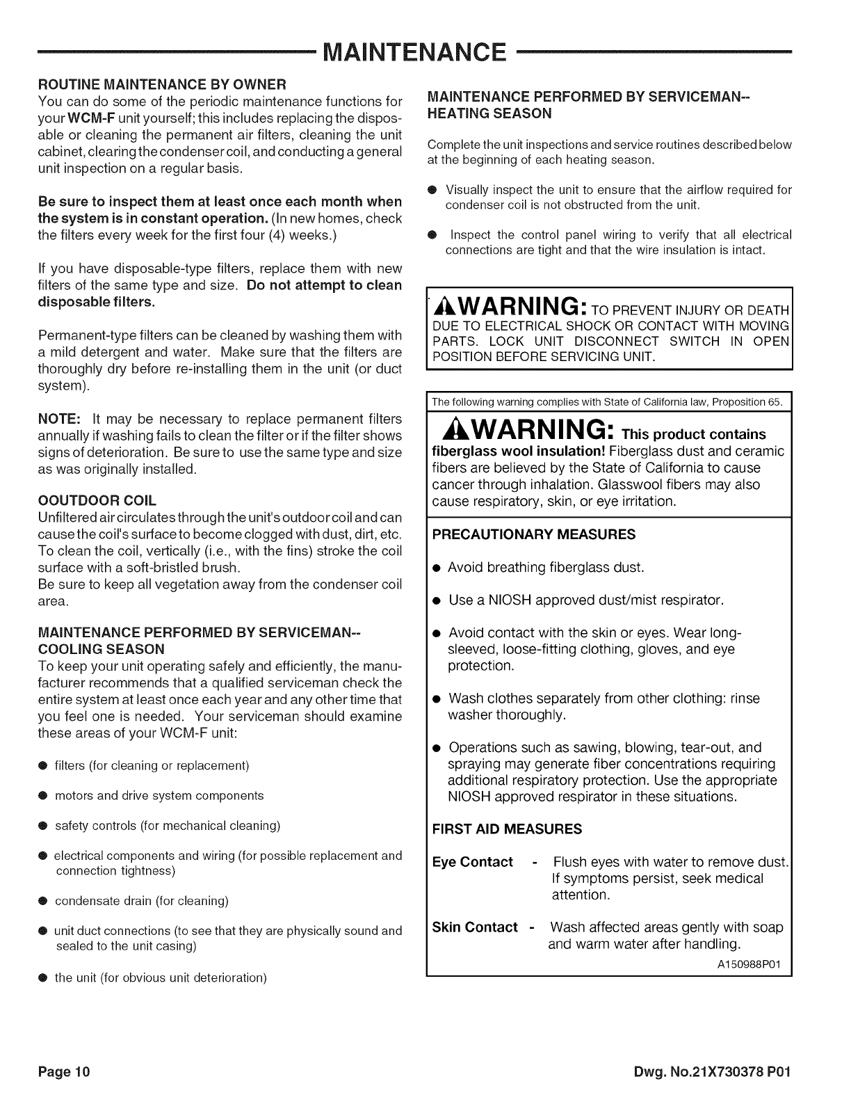 ENCE. ANY ATTEMPT TO REPAIR A CENTRAL AIR CONDI-