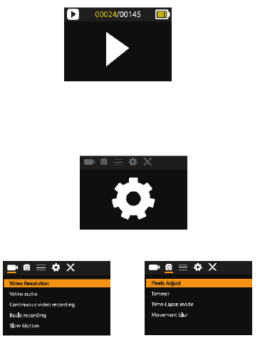 This app shows in the main display 3 options: video, photo and movement. In the bottom
