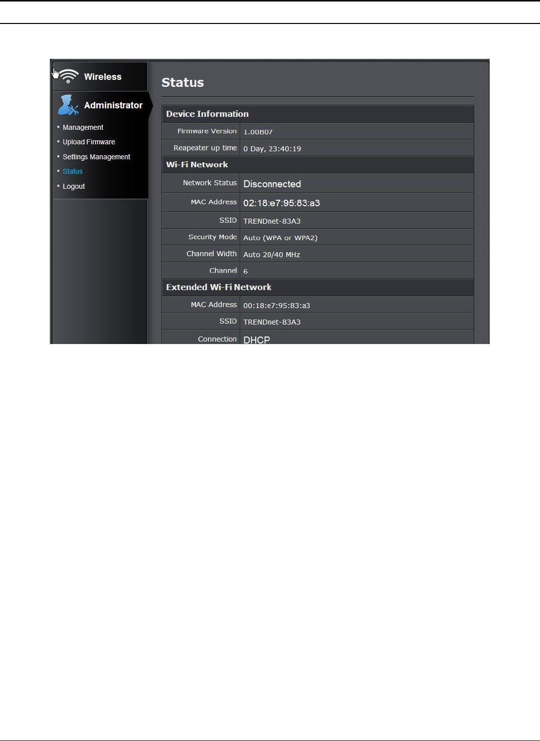 You may want to check the system information of your repeater such as WAN (Internet) connectivity, wireless and wired network