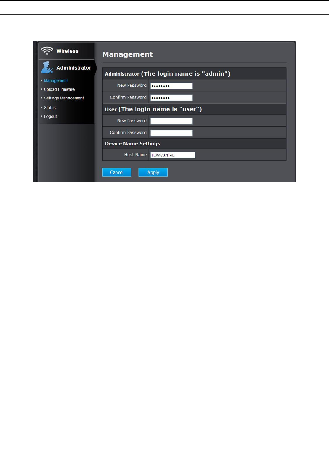 6.User (Optional): The User account is an additional account used for viewing the settings on the router management page only.