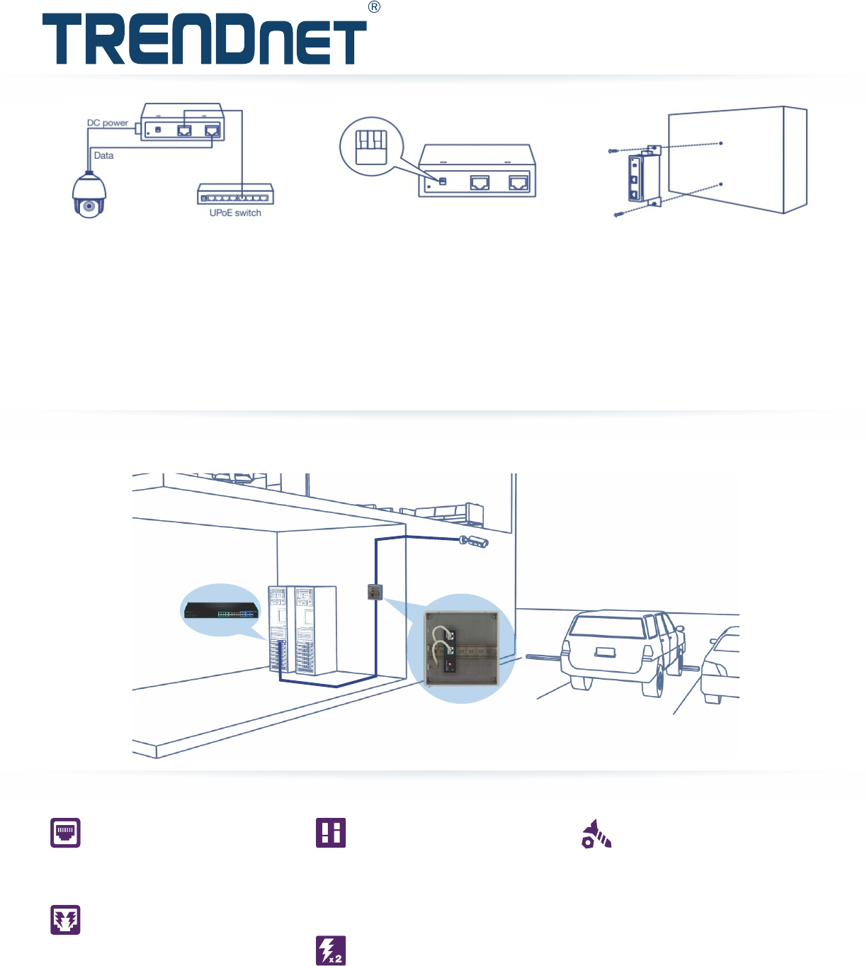 • Permite alimentar un dispositivo no PoE situado a hasta 100m (328 pies) de distancia del equipo de alimentación eléctrica
