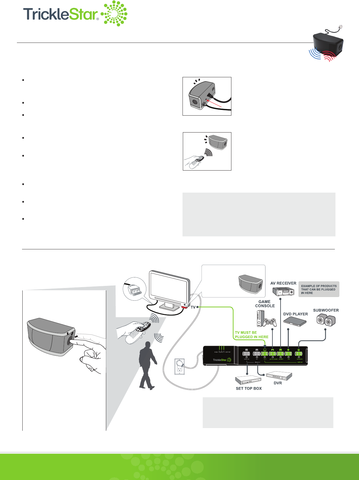 Supports RF4CE pairing with DirecTV® and Comcast® remote