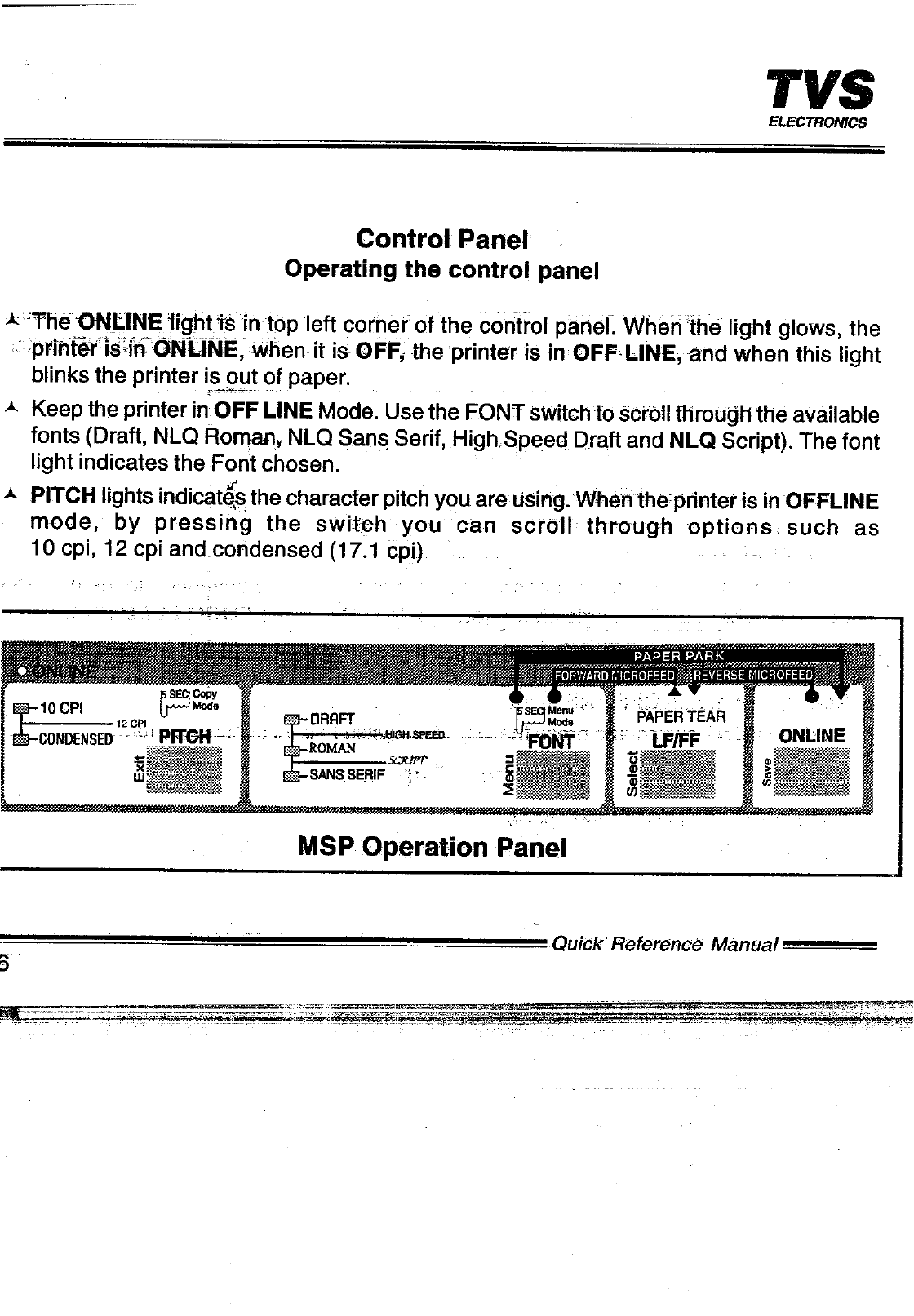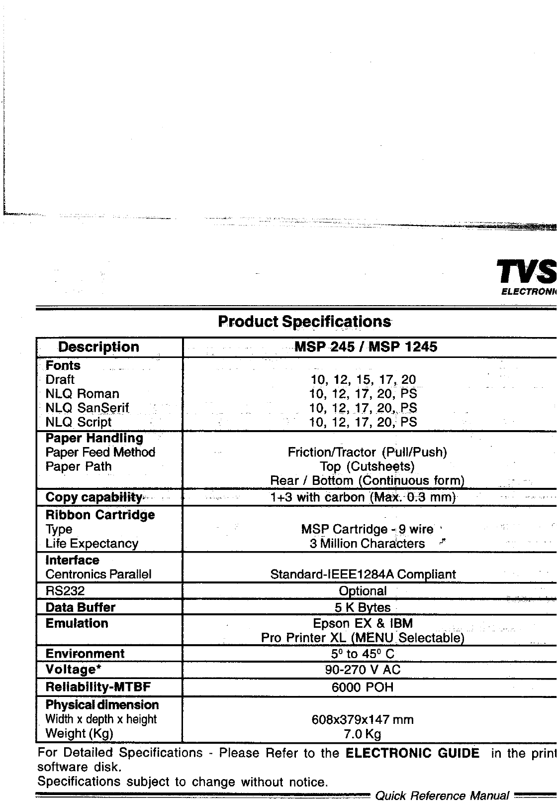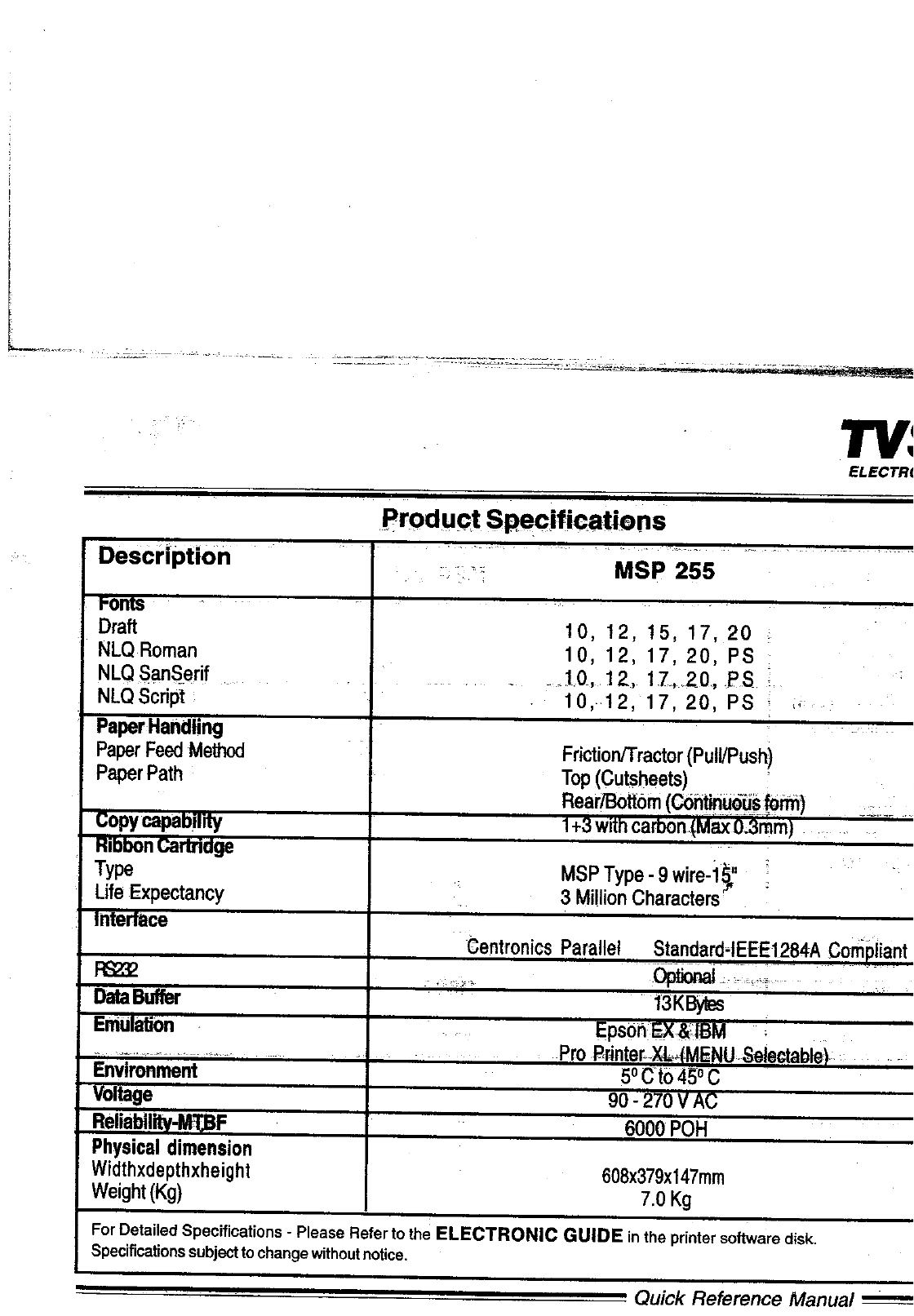 TVS Electronics MSP-330 DOT MATRIX PRINTER User Manual