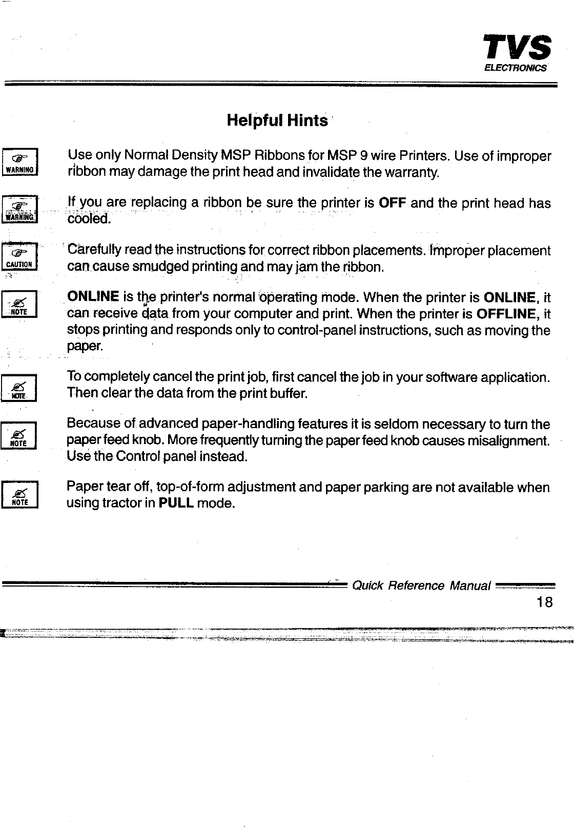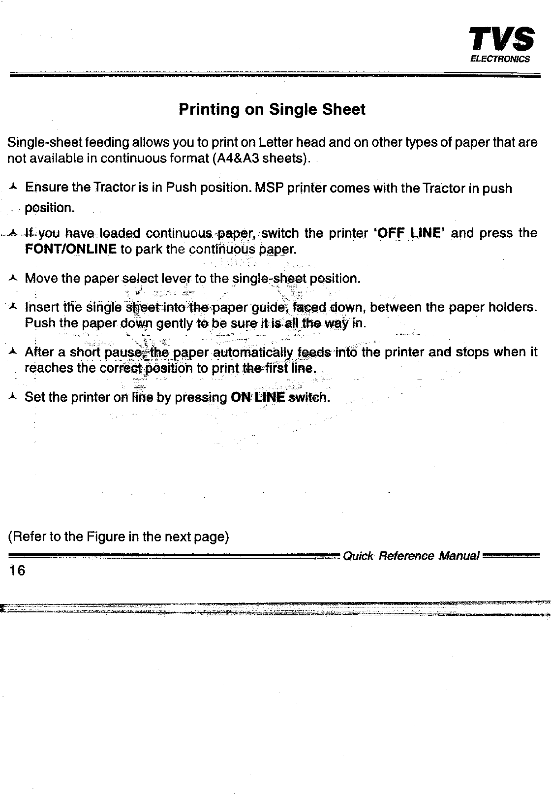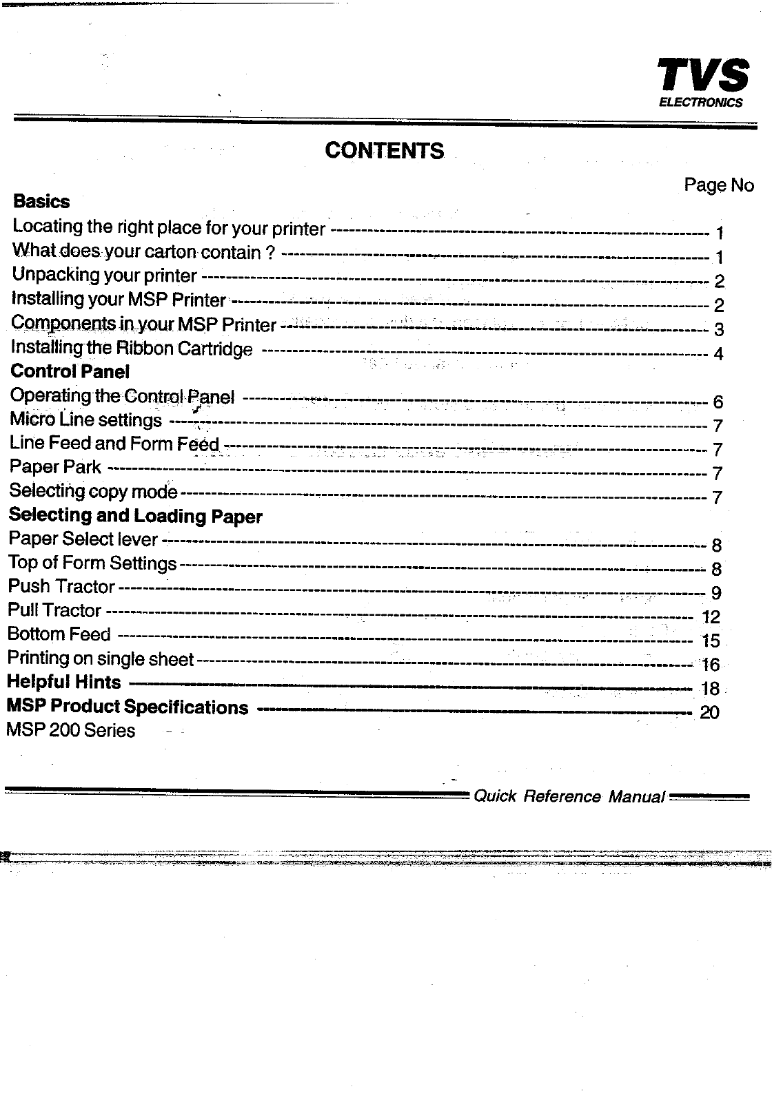 TVS Electronics MSP-330 DOT MATRIX PRINTER User Manual