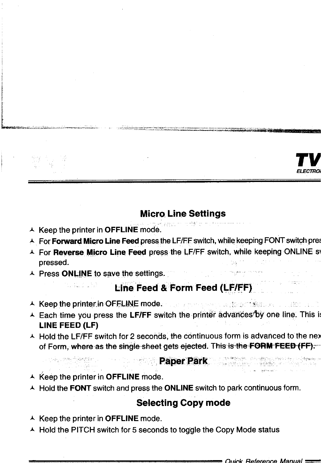 TVS Electronics Limited DOT MATRIX PRINTER Users Manual